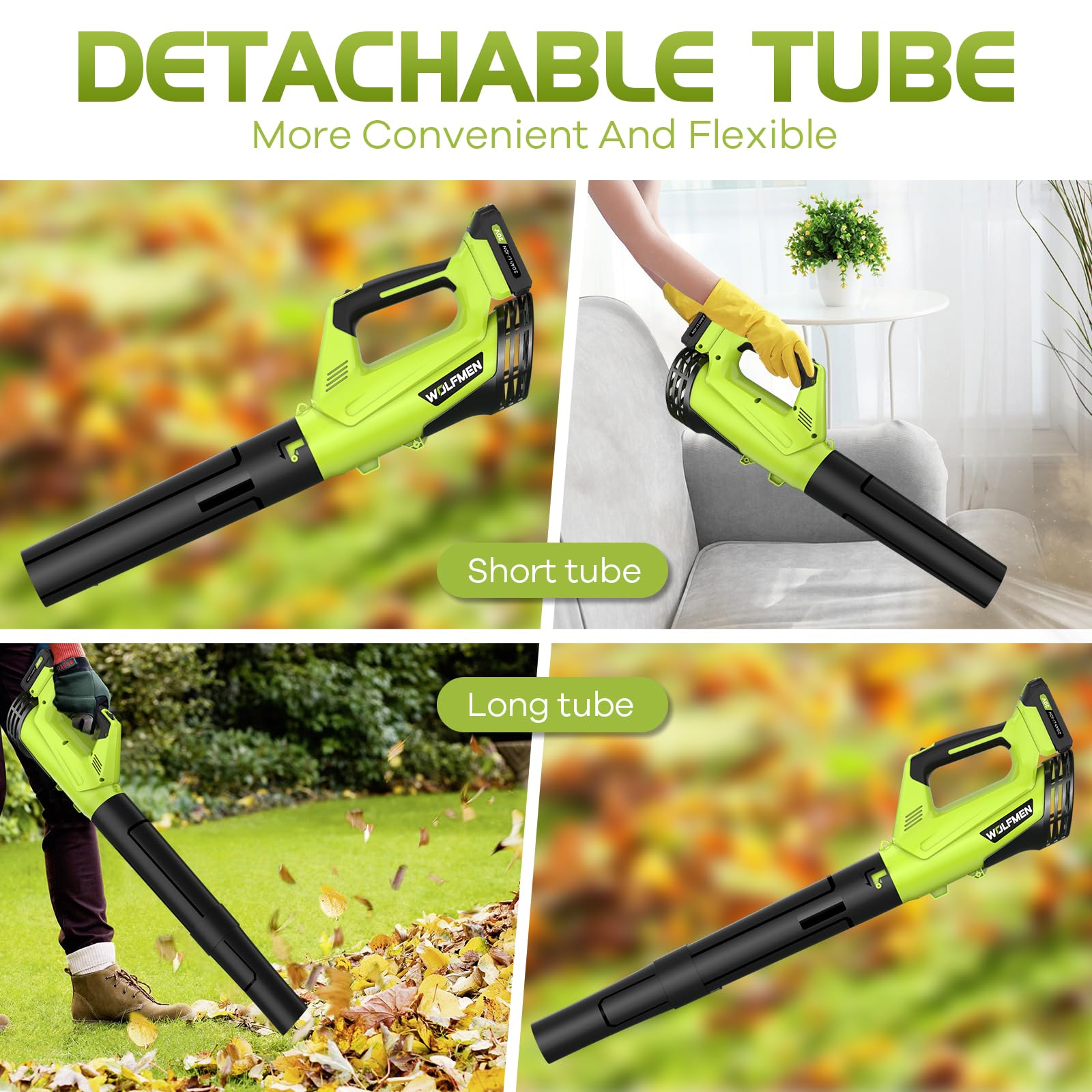 Adjustable Speed Mode: The WOLFMEN blower cordless is equipped with 2 different wind intensities, and you can find the appropriate gear to clean different areas according to different cleaning needs.A must-have for year-round yard maintenance and thorough cleanups.