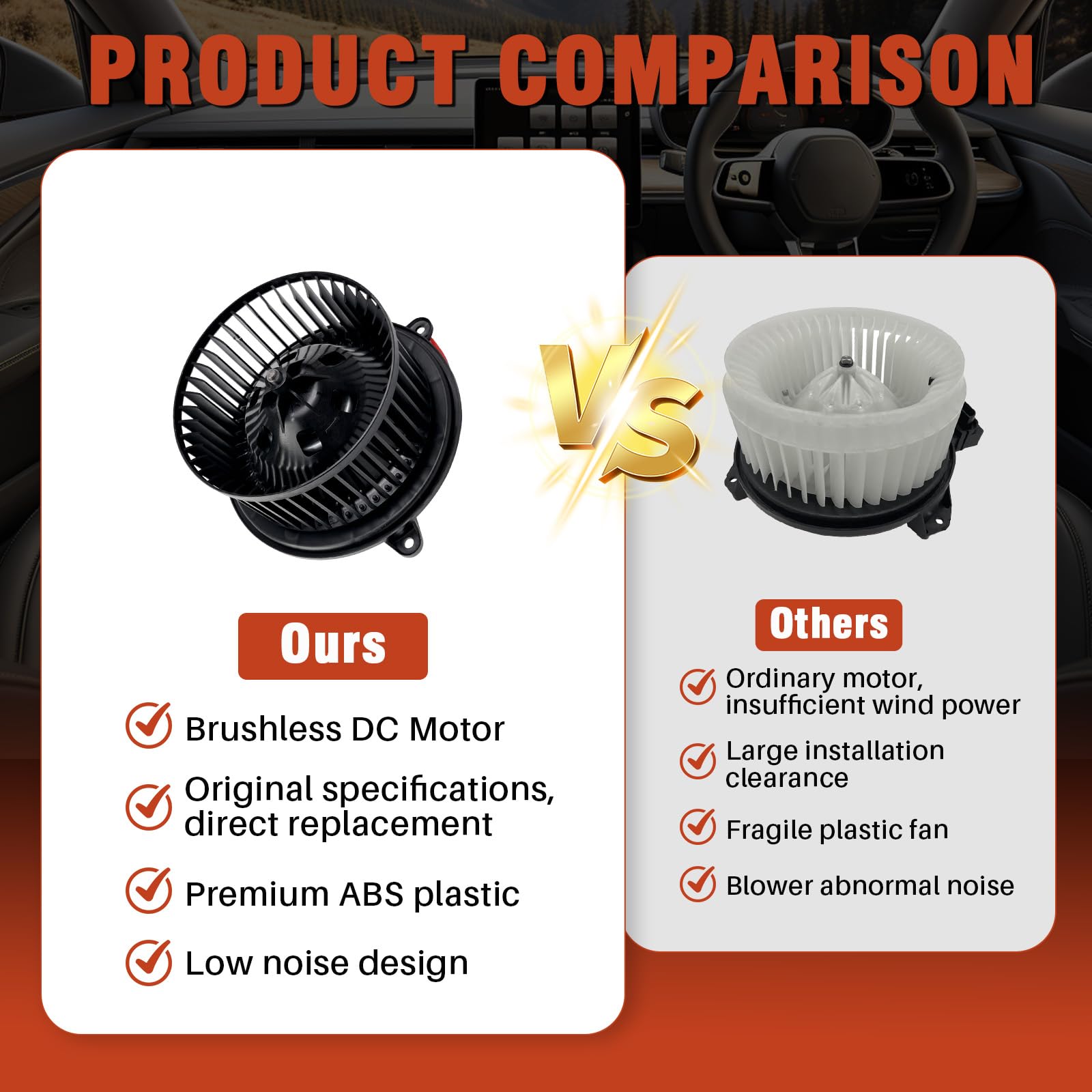 【OEM Standard & Durability】Manufactured in strict compliance with OEM specifications, this AC blower motor is constructed from premium wear-resistant materials. It ensures consistent airflow output paired with quiet, smooth operation. A 3-year free coverage service are included for your peace of mind