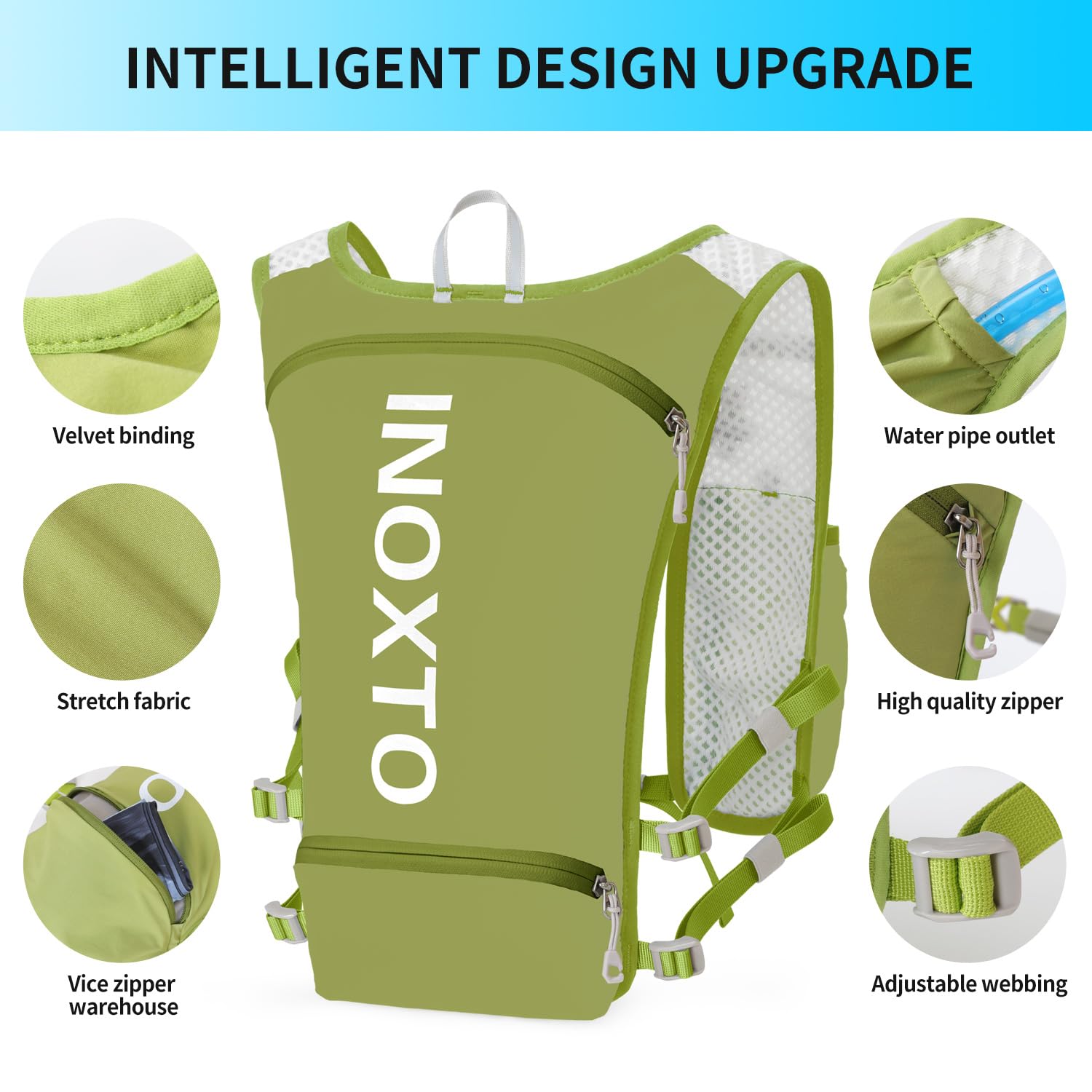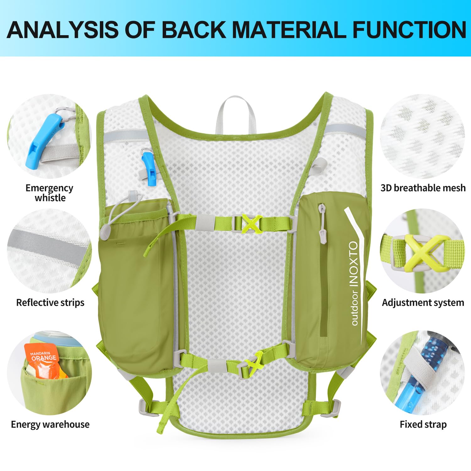 ❤ 【Ultra-lightweight design】 High-quality nylon material and ultra-lightweight design make it more comfortable to drive. The INOXTO Sport Backpack weighs only 140 grams and can hold 1.5 liters in the main compartment. In addition, the left and right belts have pockets for storing 250 ml PET bottles. Next to the main pocket, there is a pocket for storing mobile phones and items, so you can jog while listening to music!