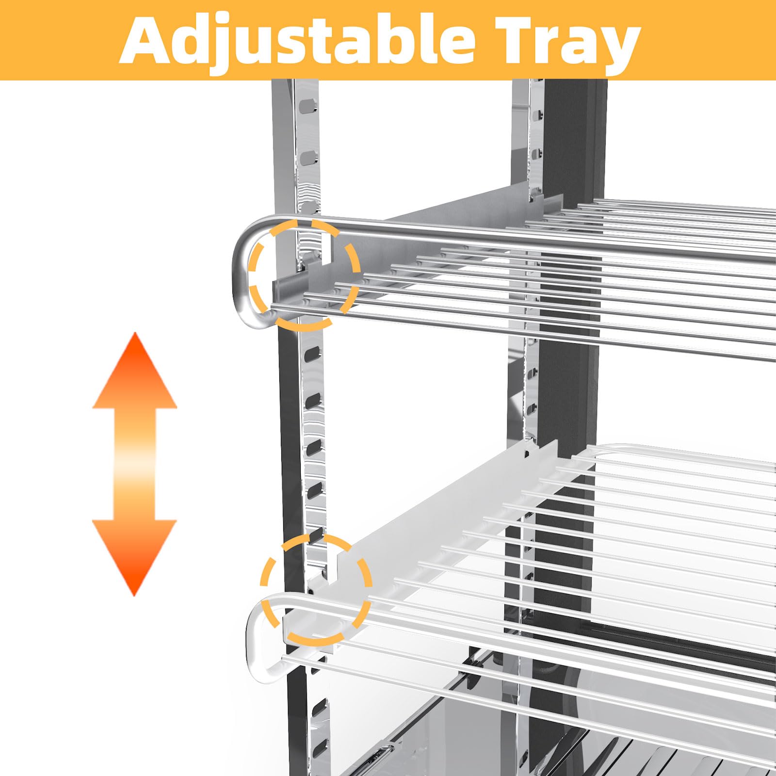 【Adjustable Height】The three-layer food warmer display is easy to disassemble and clean, and the height of each layer can be adjusted freely, which is very convenient. Heat-resistant glass, perspective and strong, can be all-round display of food, both beautiful and durable