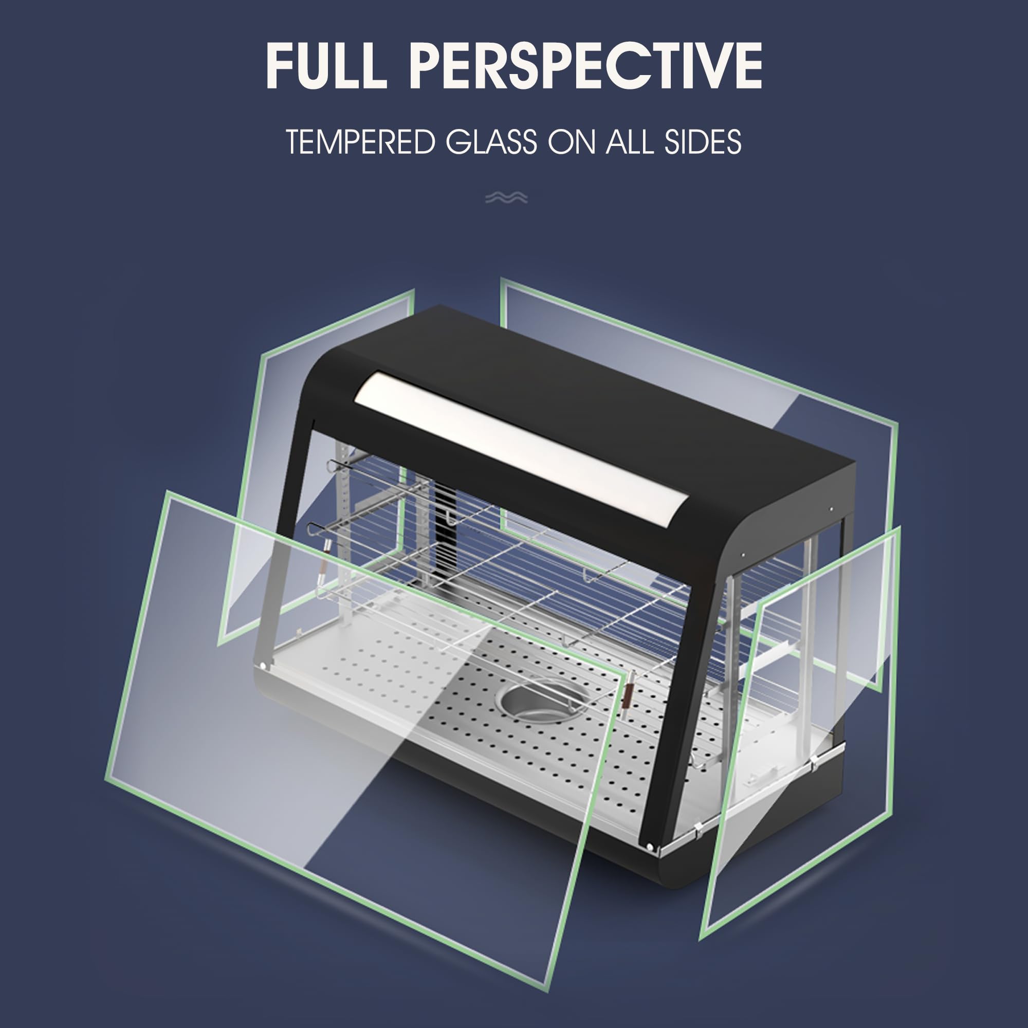 【Wide Application】The food warmer is perfect for cafes, concession stands, fast food restaurants, bakeries, canteens or other commercial use to keep pizza, hamburger, etc. warm, or for self-serving at food courts, dining area, making your shop-front more attractive