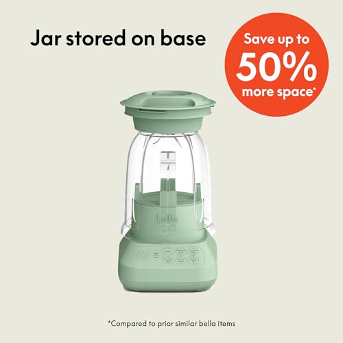 Meet the bella Flip & Store Blender, a sleek and space-saving powerhouse designed for modern kitchens. With its innovative flip jar storage design, our blenders fit seamlessly into any cabinet, keeping your kitchen tidy and organized. The slim profile of this small food processor not only saves space but also adds a touch of style to your countertop. Powered by a 450-watt rated (520W peak) blending system, this ice crusher is equipped to handle everything from ice to fresh and frozen fruits and vegetables. The durable 4-tip stainless steel blade ensures smooth, consistent results, whether you’re whipping up slushy cocktails, creamy soups, or large protein shakes for the whole family. The generous 48 oz capacity pitcher is perfect for blending family-sized portions, making it a versatile tool for all your culinary creations. The hand blender’s 10 speed control settings offer complete flexibility, allowing you to customize your blend from smooth purees to chunky salsas. The lid features a convenient filler cap that doubles as a measuring cup, making it easy to add ingredients on the go. Cleaning up this milkshake maker is a breeze with the removable, dishwasher-safe jar and lid. Available in five stylish bella colors—Oatmilk, Surf, Plum, Seaglass, and Blossom—this baby puree maker isn’t just functional; it’s a perfect gift for new apartments, housewarmings, or wedding registries. The cord storage in the base keeps everything neatly tucked away, ensuring your kitchen stays clutter-free while you enjoy powerful, efficient blending every time.