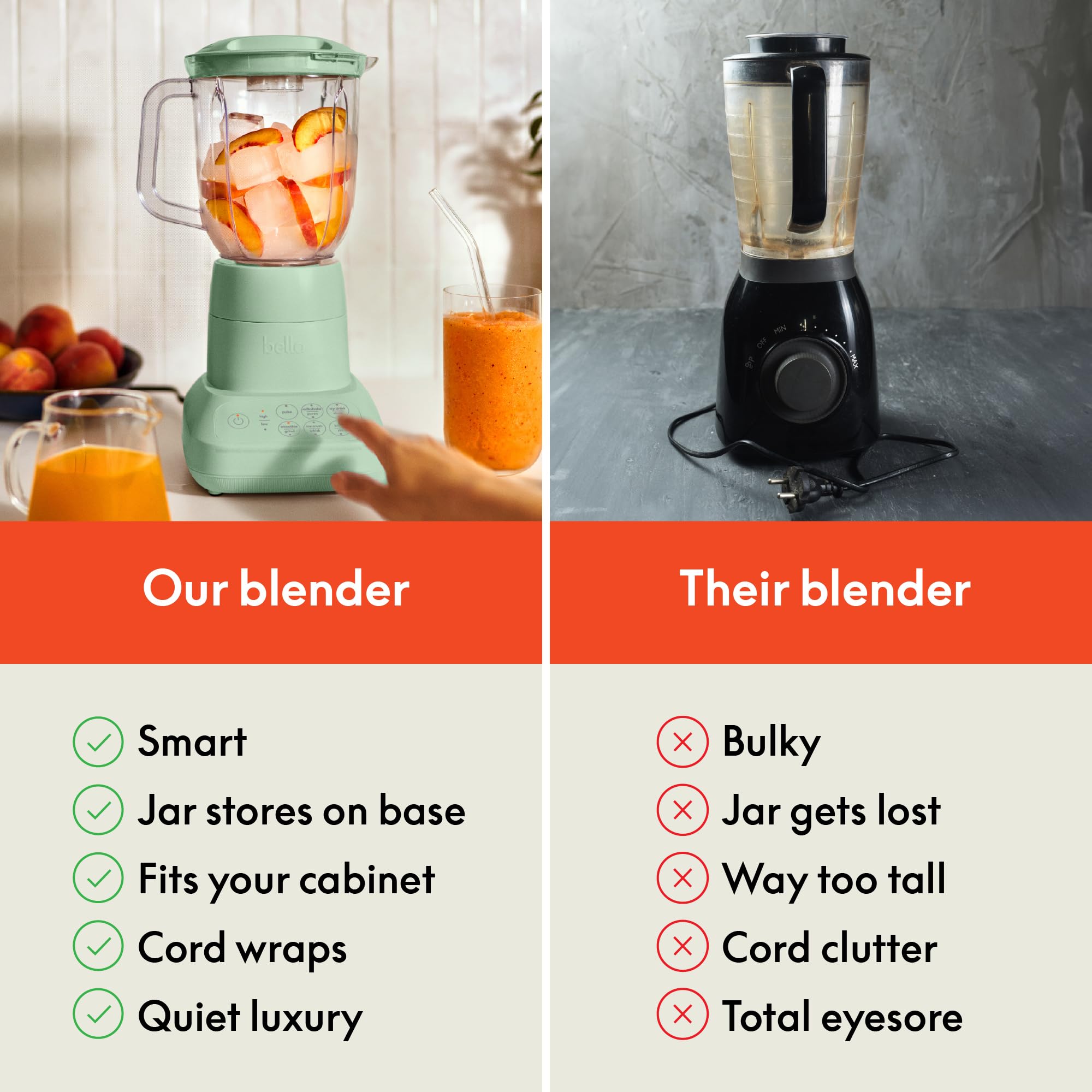 Space-Saving Design: Part of our Fits-anywhere kitchenware system, the bella Flip & Store Smoothie Blender features a unique design where the 6-cup jar flips onto the base, saving up to 50% more space when stored. Perfect for compact kitchens!