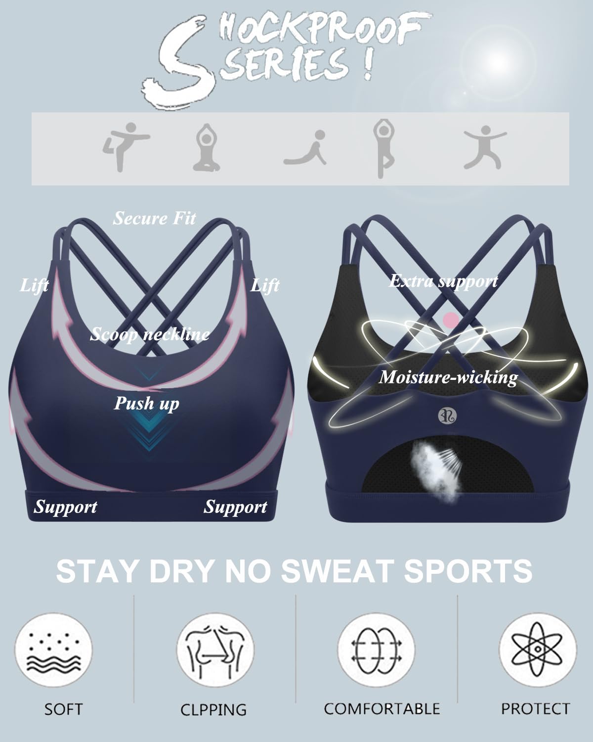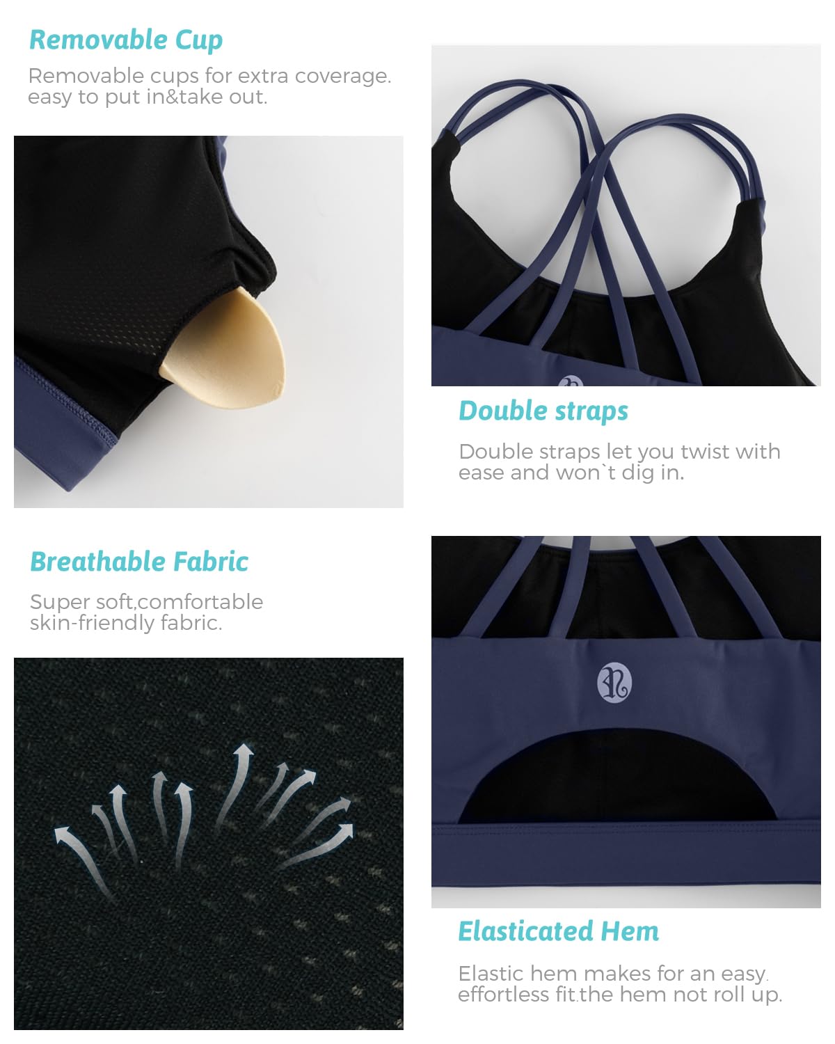 √YOUR SECURE FIT - Strappy design meets sporty style. Super soft scoop neckline with light, removable pads. Open cutout back styling sports bras for women medium support, widen band underneath the breast ensures a tight secure fit. Removable cups for extra coverage. The removable vertical cotton bra pads are easy to clean.The padded sports bra which always retains its shape and prevent bra bulges, caresses your figure to adjust to your curves.