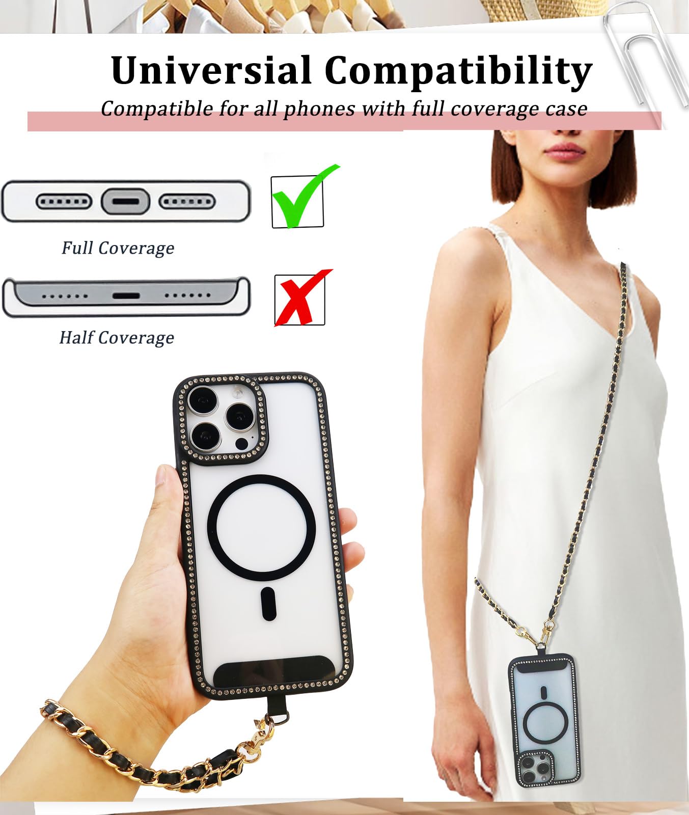 【Adjustable Crossbody Strap】 – Press the metal ball to slide the adjuster to customize the length for a snug fit. Prevents drops, deters theft, and keeps your phone secure while shopping, walking, or cycling. Maximum Length 27.5 inch(70 cm)
