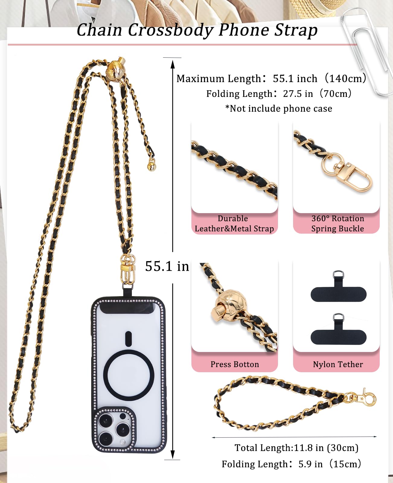 【Versatile & Multi-Use Strap】 – This adjustable phone lanyard crossbody works not just for smartphones but also wallets, keys, earbuds(we provide 2*key ring for you to attach the wallet or other item). A must-have accessory for daily convenience!