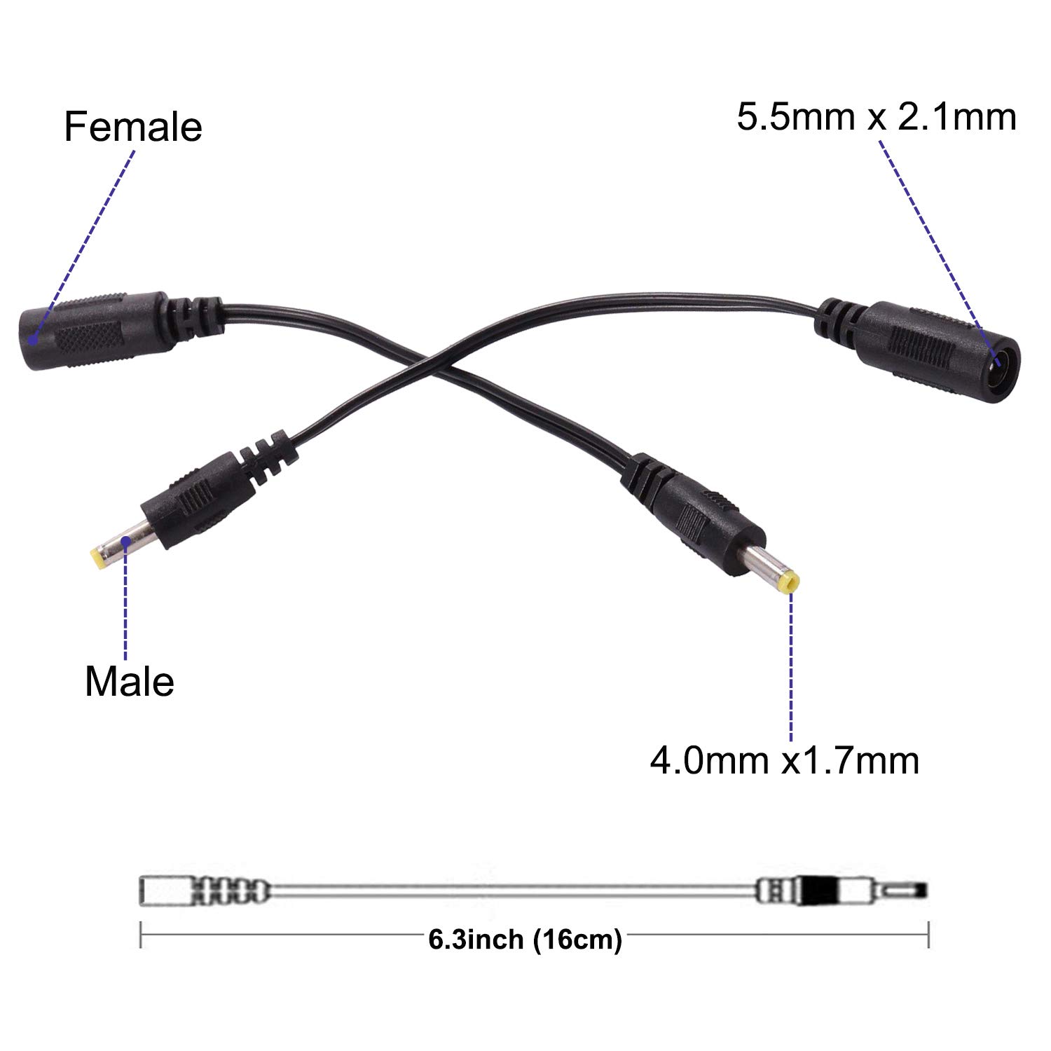 What You Get: 2 x 0.59ft 5.5*2.1mm Female to 4.0*1.7mm Male DC Power Adapter Converter Cable.