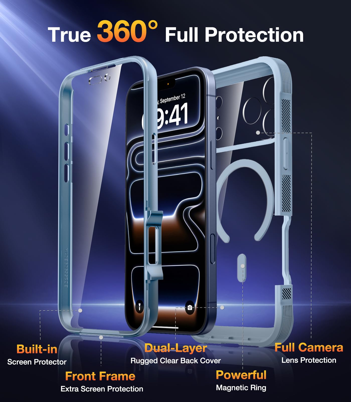 Diaclara Magnetic Designed for iPhone 17 Pro Max Case Full Body Bumper,[Compatible with MagSafe] Military Drop Proof Cover with Built-in Touch Sensitive Anti-Scratch Screen Protector, Blue