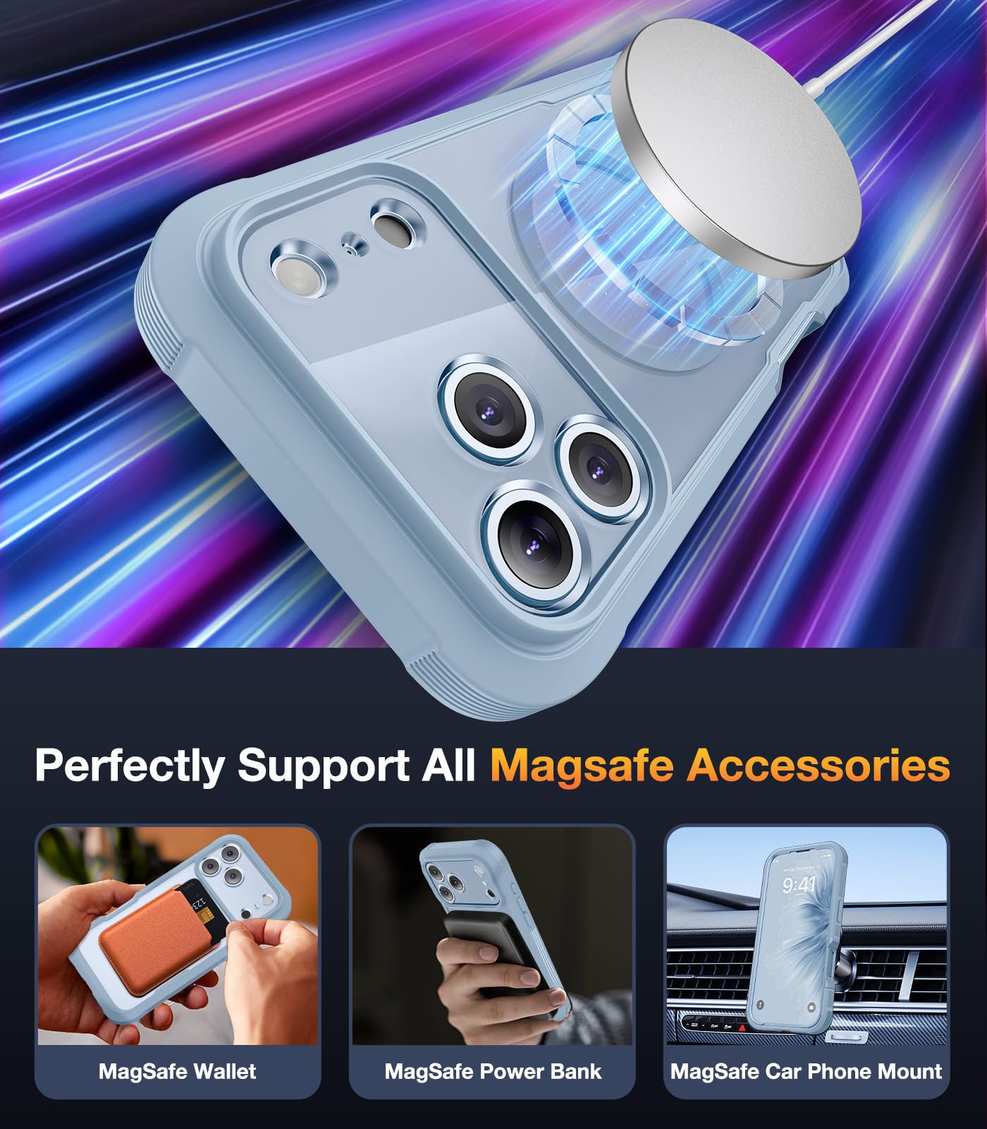 【Fit All Magnet Accessories】 Built in 2025 upgraded generation magnet ring, locking and compatible with magsafe accessories, wireless charging is faster, easier, and safer. Works 100% with wireless charging pad, don't need to remove the case.