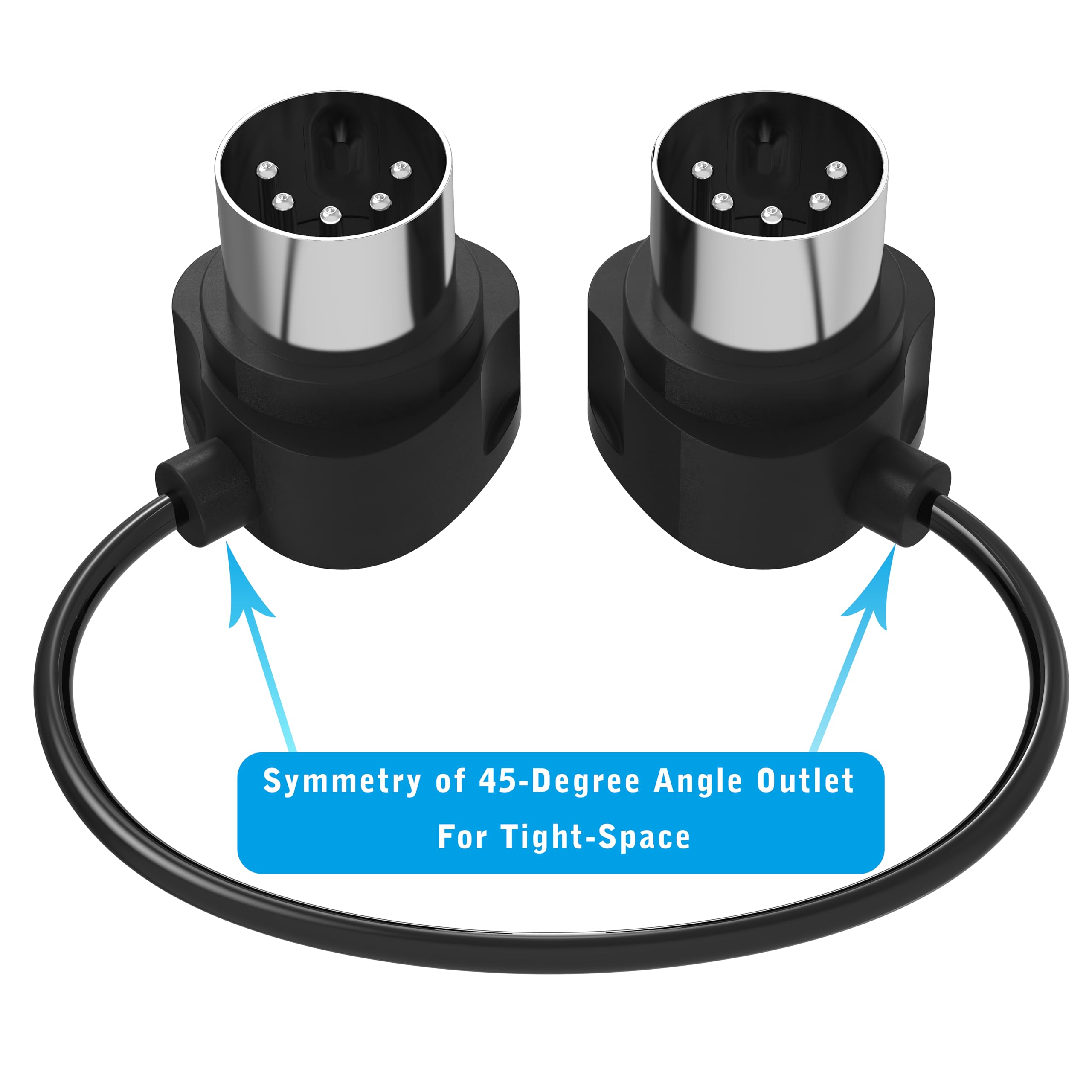 2 Pack x 1 Feet / 30cm 45-Degree Symmetry Angled Ultra-Small Plug midi cables. Designed by FORE, advanced cable construction to enable high-speed reliable MIDI data transmission, molded connector design increases durability and resists damage.