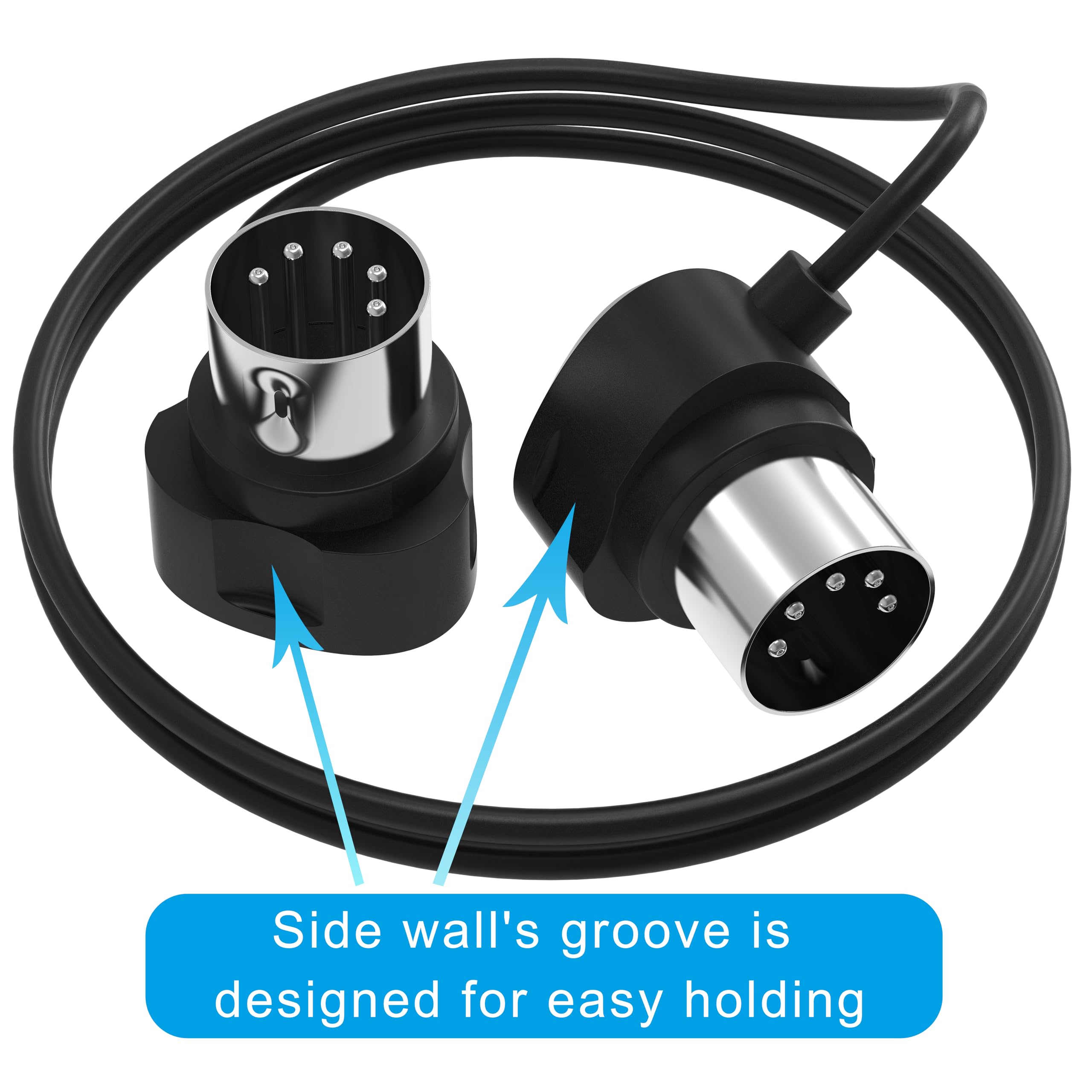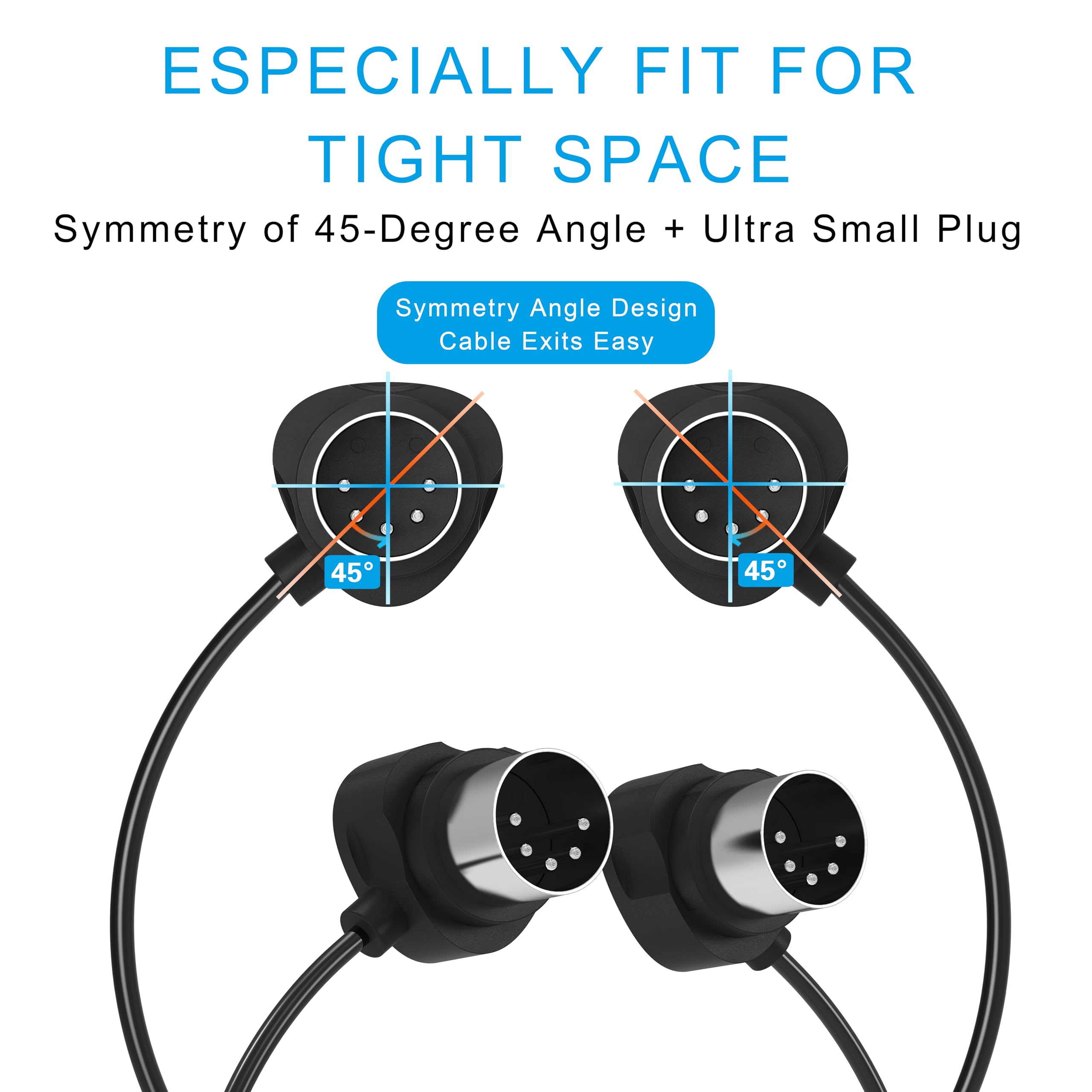 FORE 45-Degree Symmetry Angled Ultra-Small plug 5 Pin Din MIDI cable supports all the MIDI equipments with the 5 Pin Din MIDI port, provides premium MIDI transmission. Side's groove is designed for easy unplugging. The 90-Degree Ultra-Small Plug adapts especially tight spaces.