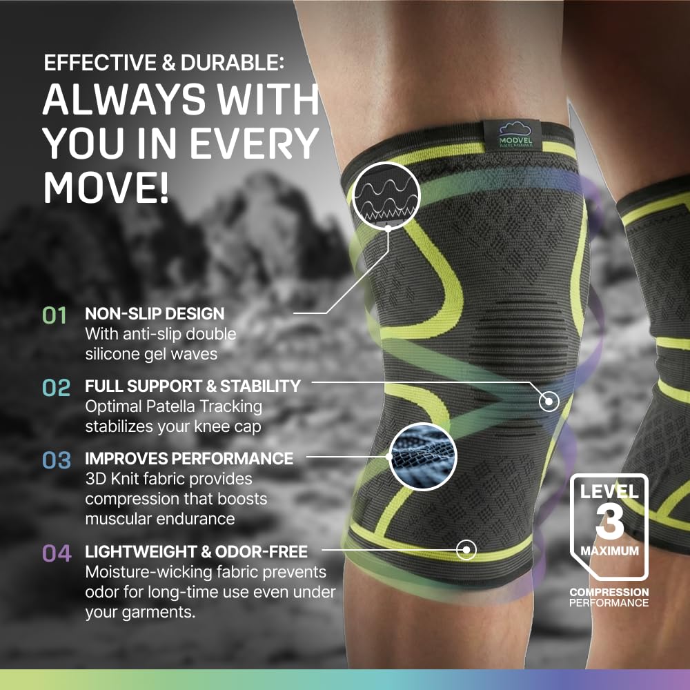 Breathable & Moisture-Wicking Comfort: Embrace an active lifestyle with our knee braces and protective pads for knee pain. Say goodbye to trapped sweat and odors—stay cool and comfortable throughout the day with this shock-absorbing compression knee sleeve.