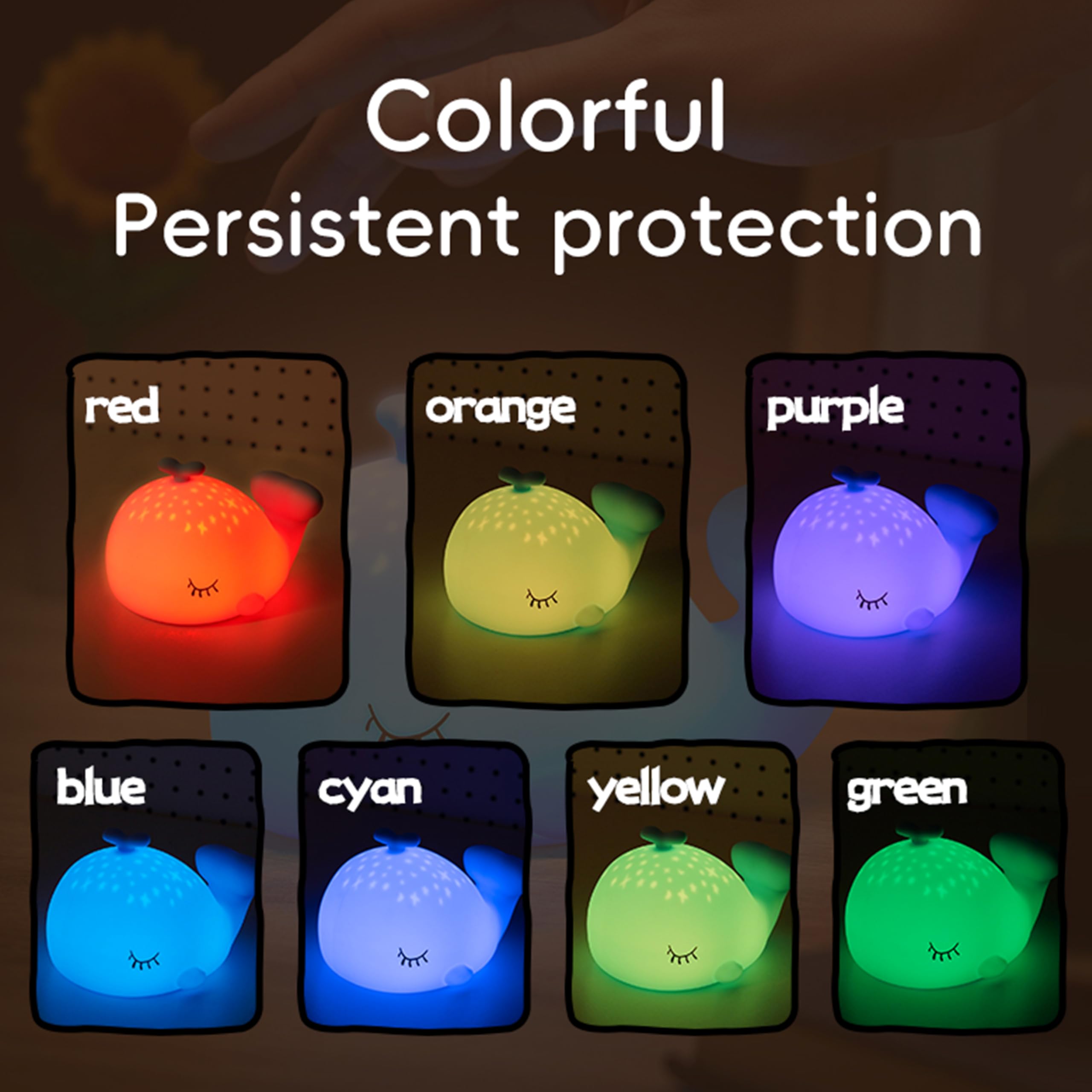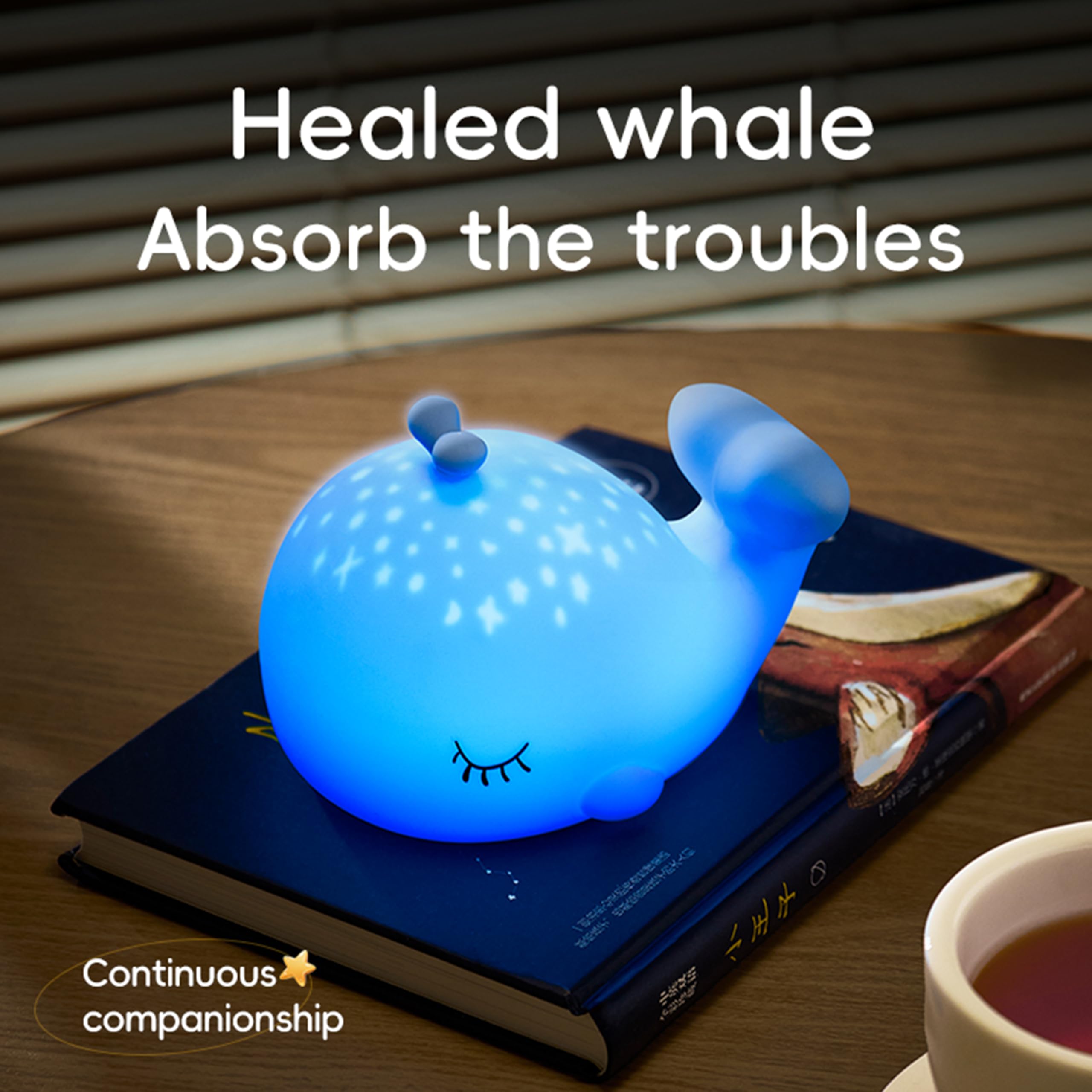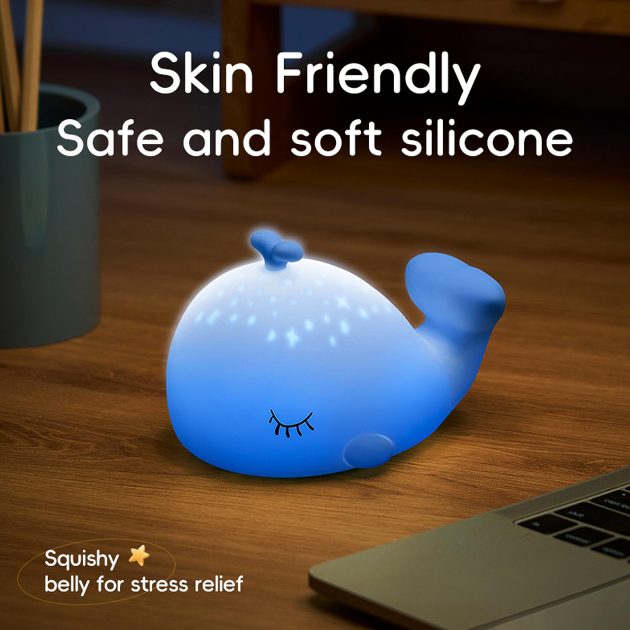 【USB Rechargeable & Portable】This LED squishy whale night light is a companion for rechargeable LED bedside lamp and sleep light. Designed in handheld size, you can carry the night light with them when traveling. This cute and practical wireless lamp is a must-have for all ages.