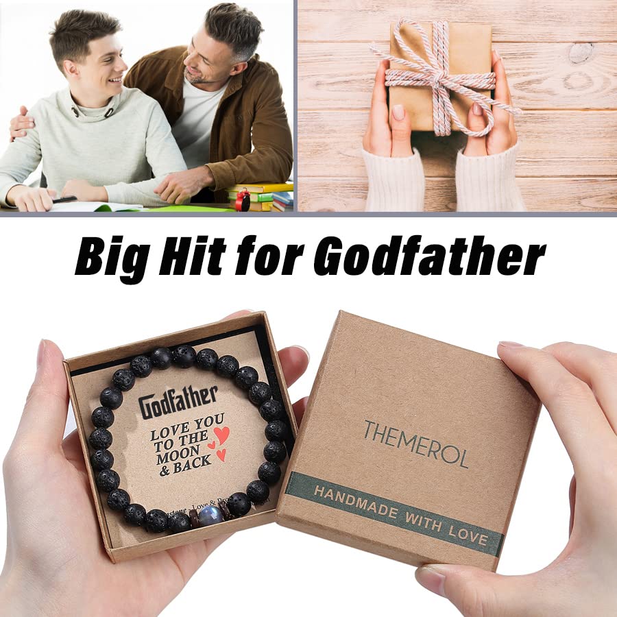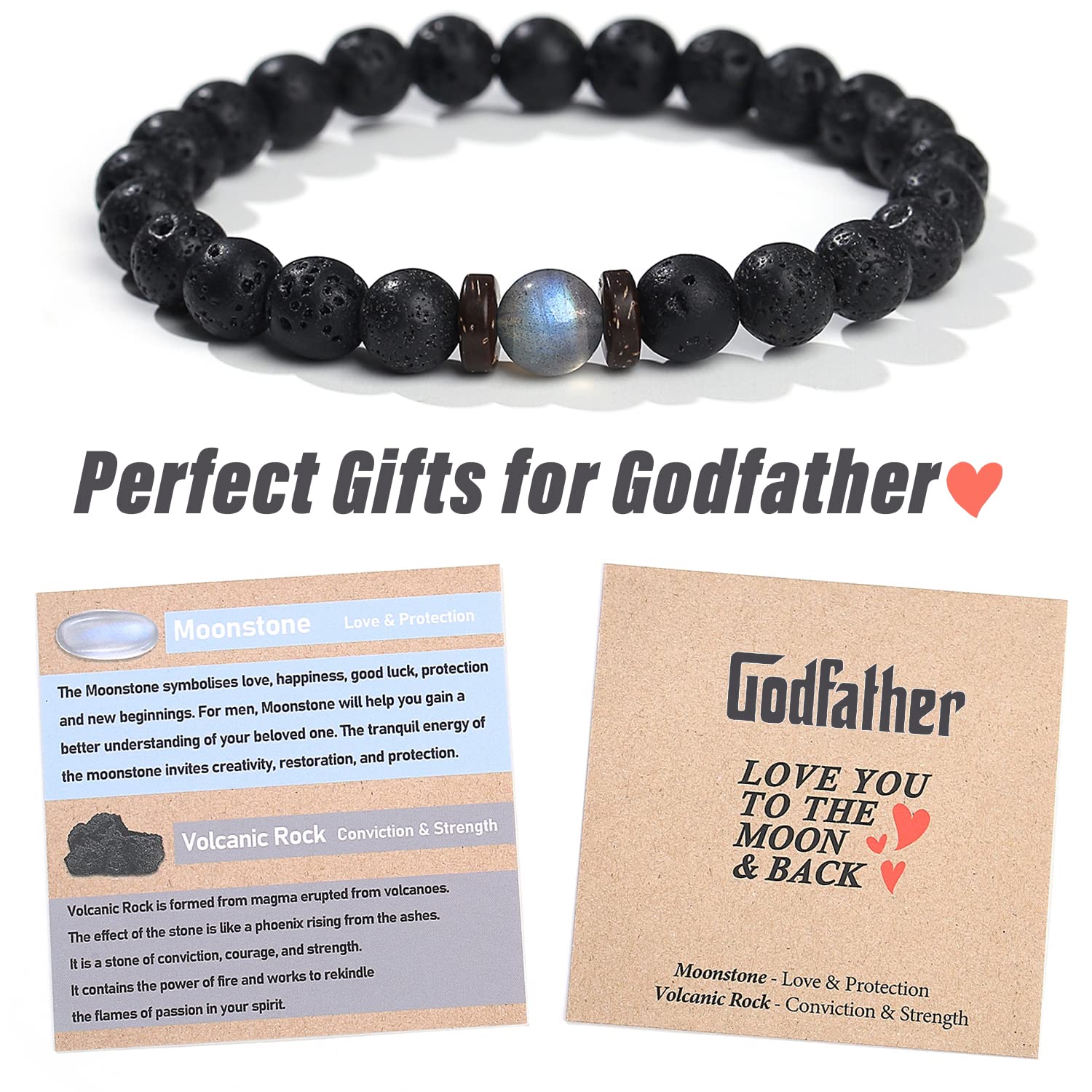 【Unique Gifts for Godfather】This handmade bracelet combined with Strength Volcanic Rock and Love Moonstone. It brings your godfather powerful strength, courage, conviction, good luck, love, and protection. It works amazing as godfather gifts from godchild, godfather gifts from goddaughter, god father birthday gifts.