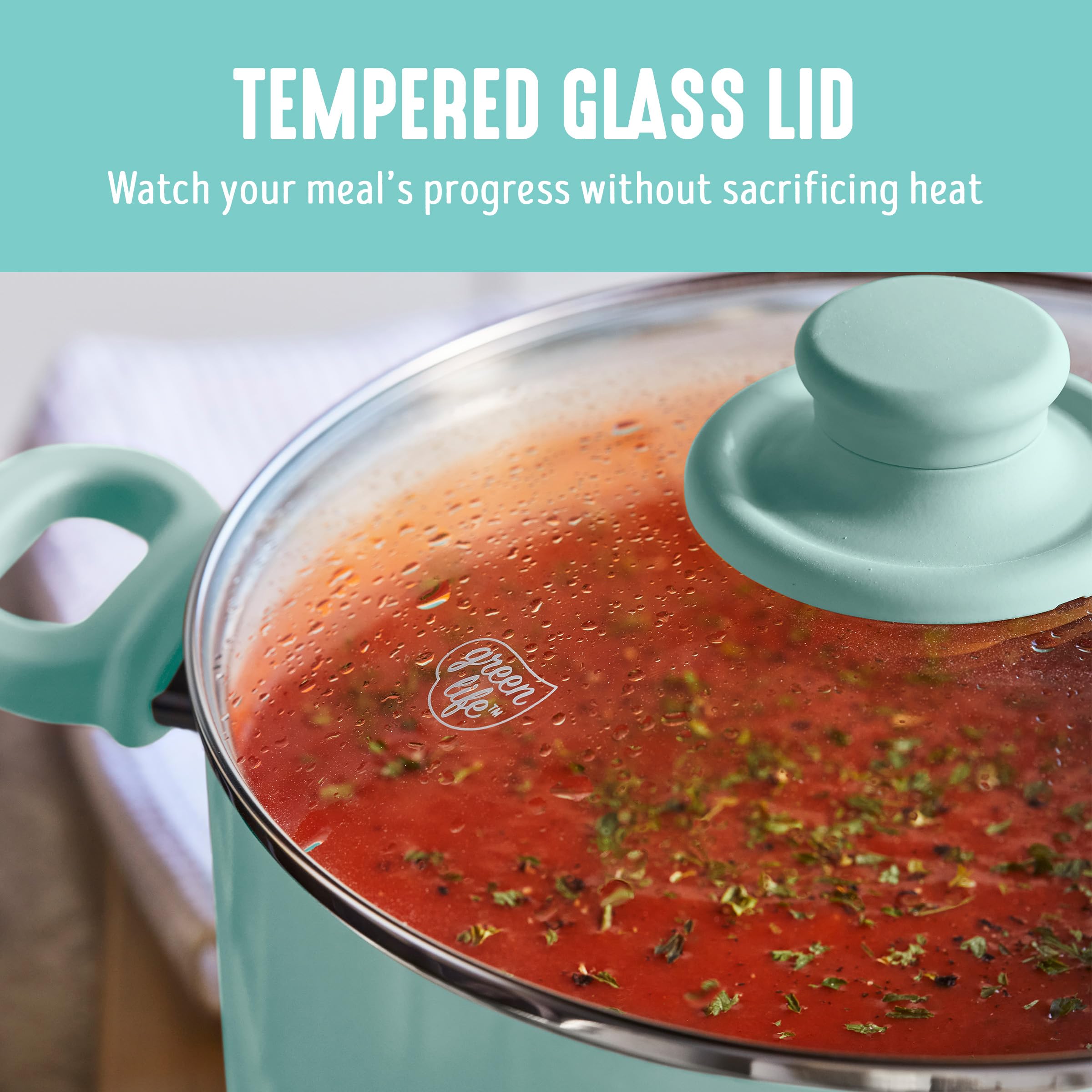 DURABLE GLASS LIDS FOR EASY MONITORING: Tempered glass lids let you check on your food without lifting and releasing heat.