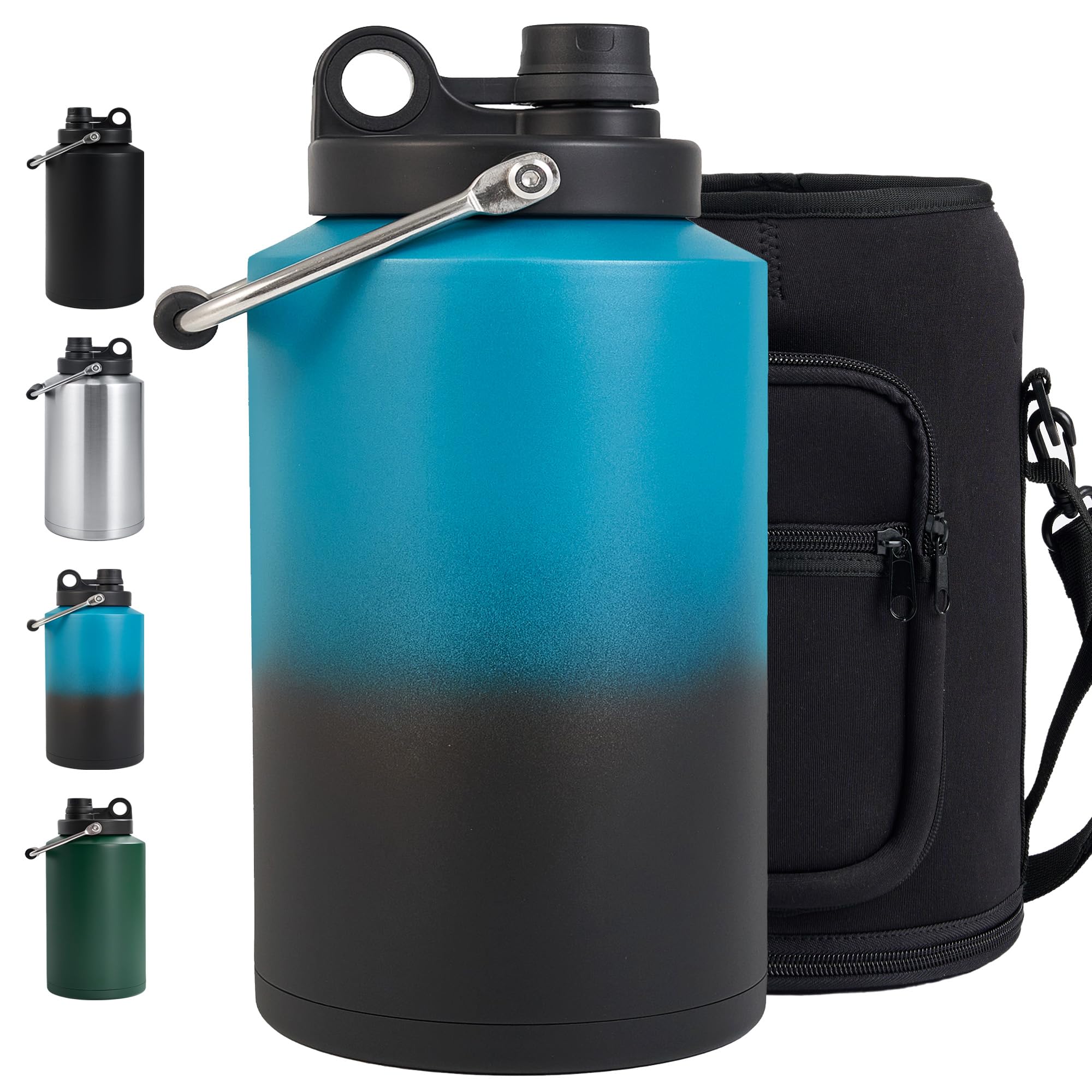 💧VACUUM INSULATED: Double layer vacuum insulated kettle, keeps the liquids icy for up to 48 hours or piping hot for up to 24 hours.This gallon water bottle is made of Powder-coat sweat-free technology, bottle grabbing becomes easy in time after strenuous exercise.