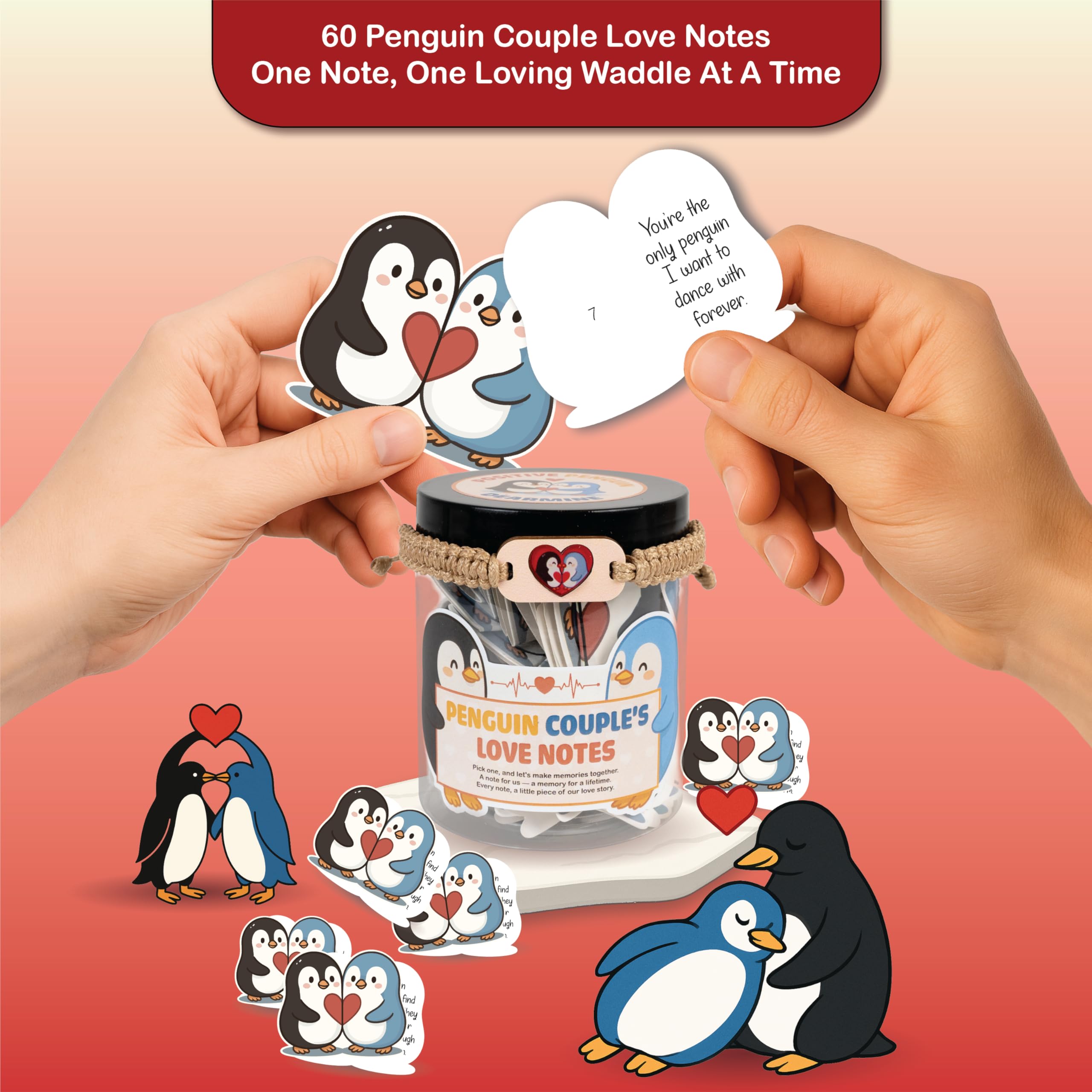 š Cute Penguin Coupleās Love Theme Each card features heart-melting Penguin Coupleās Love illustrations, making this jar a sweet piece of Penguin Coupleās Love room decor for boys or funny desk decor for home or office.