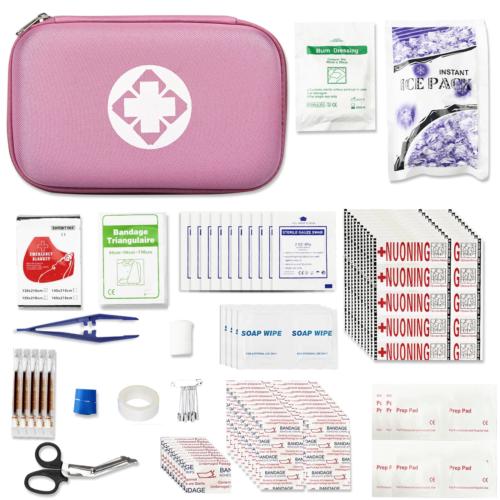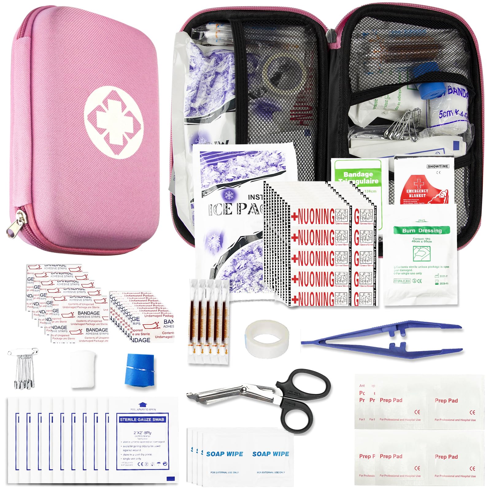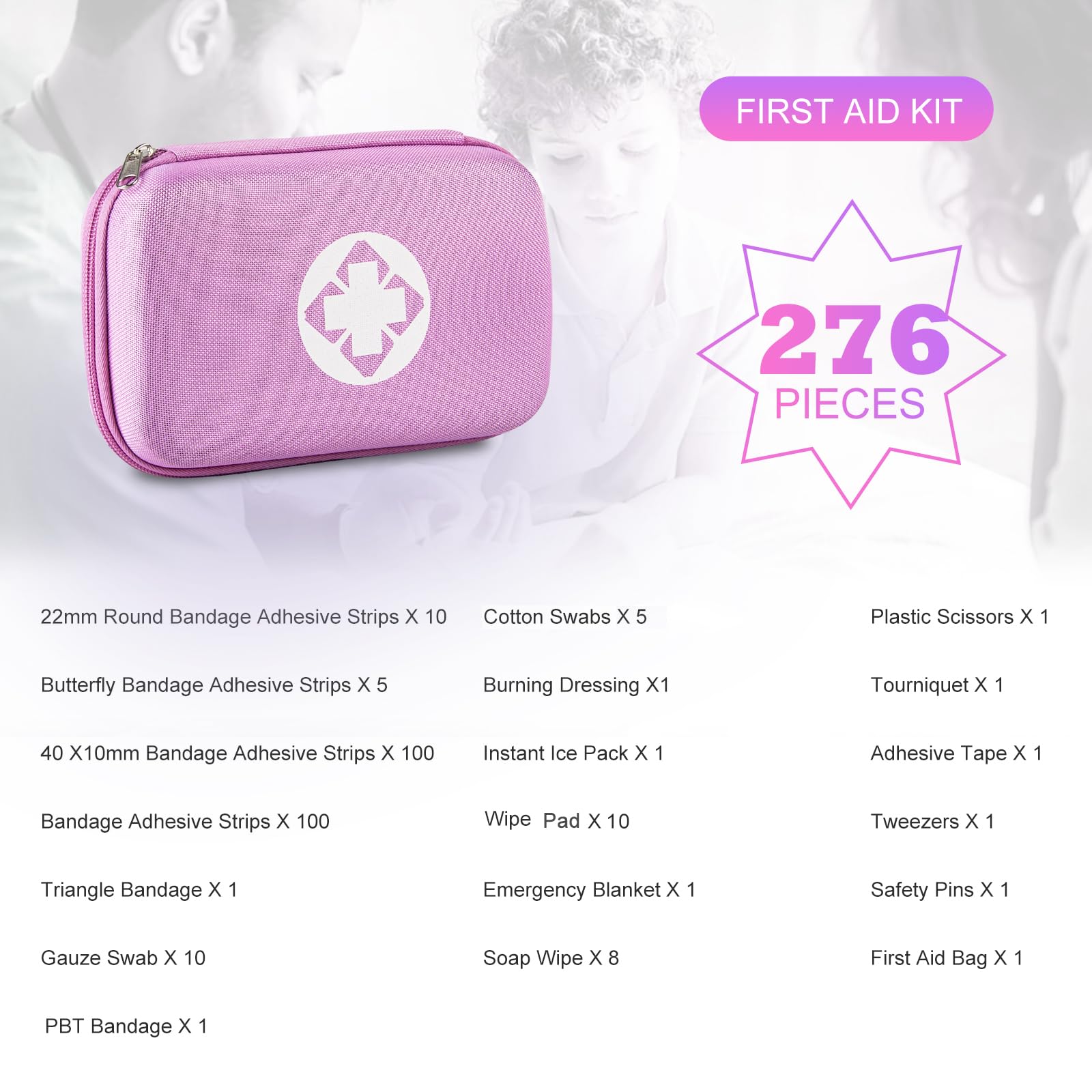 277PCS Compact Emergency First Aid Kit for Car Business Travel Size Backpacking Gear Bag Camping Essentials Survival Kit Supplies for Road Trips, Hiking, Outdoor Play Pink AMORNING