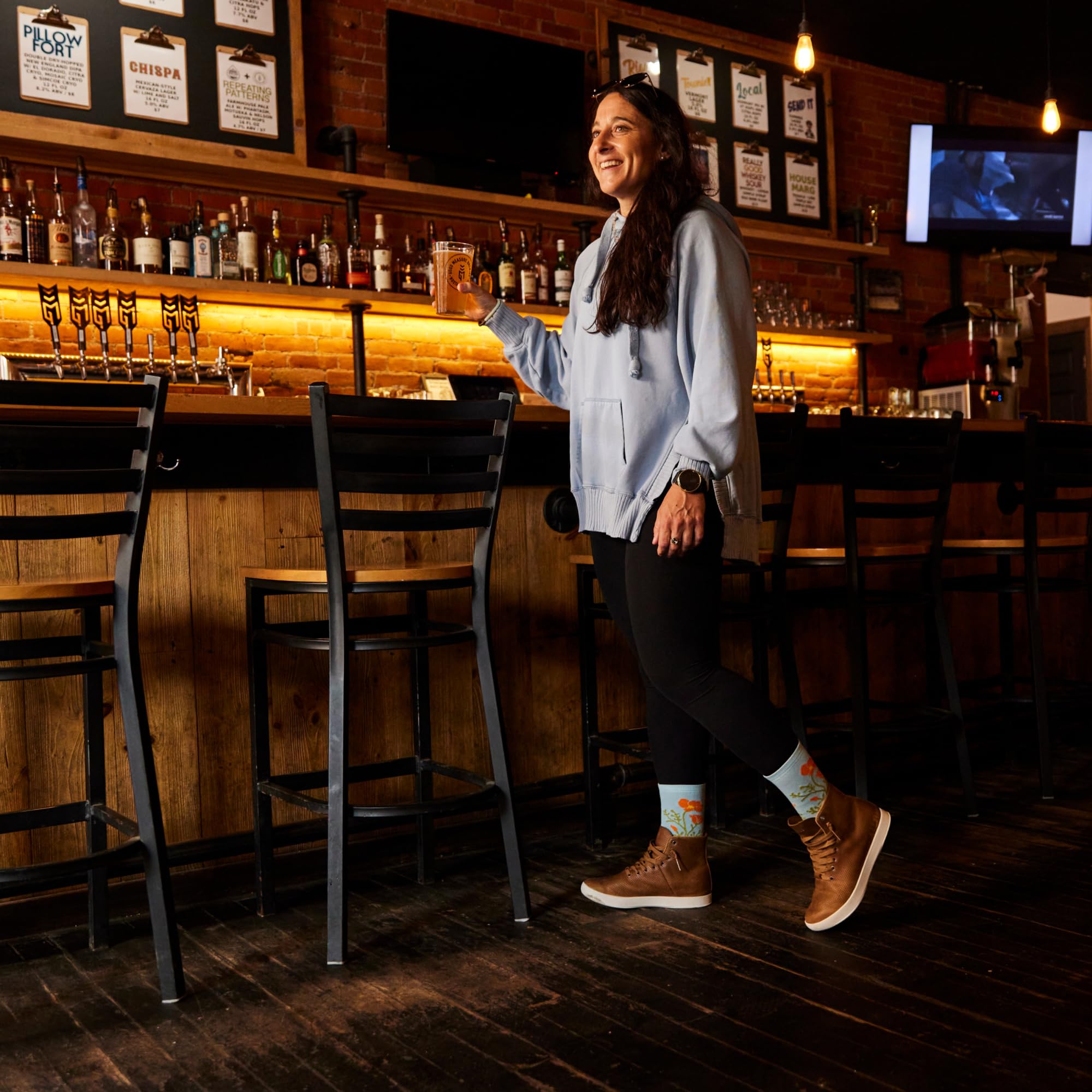 Description Womens Lifetstyle Crew, Lightweight, Merino Wool sock.