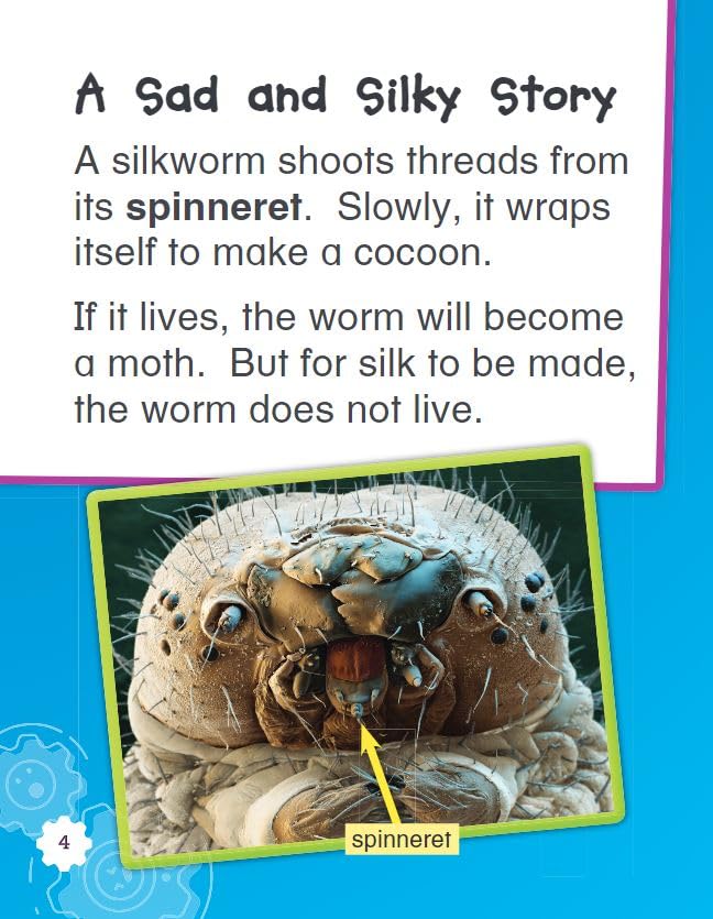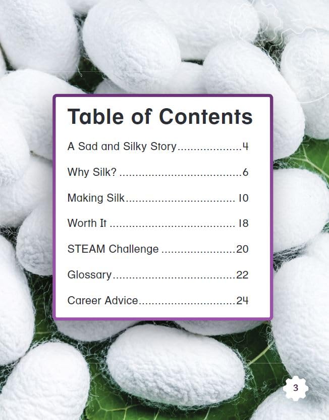 Silk is an expensive fabric that is valued for its texture and durability. Learn how silk is harvested from silkworm cocoons with this STEAM book that will ignite a curiosity about STEAM topics through real-world examples. Created in collaboration with the Smithsonian Institution, this book features a hands-on STEAM challenge that is perfect for makerspaces and that guides students step-by-step through the engineering design process. Make STEAM career connections with career advice from actual Smithsonian employees working in STEAM fields. Introduce early science topics to young readers with this book that is ideal for 1st grade students or ages 5-7.