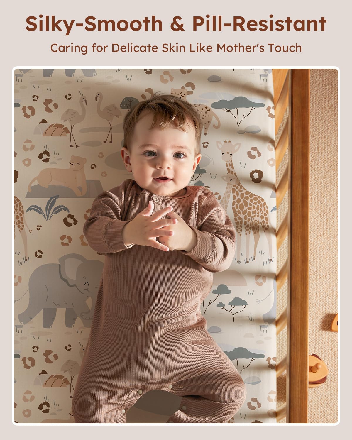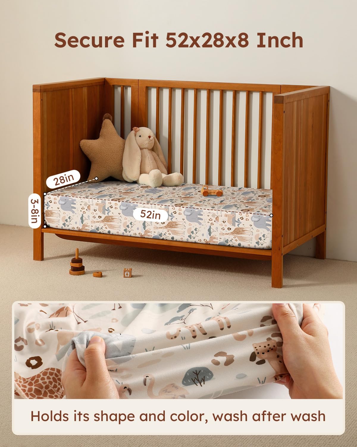 Universal Fit: Measures 52''X 28''X 8'', our crib sheets are designed to snugly fit most standard crib mattresses and toddler mattresses. 8-inch deep pocket offers safe and reliable 360° coverage, providing ultimate protection for your exquisite mattress.
