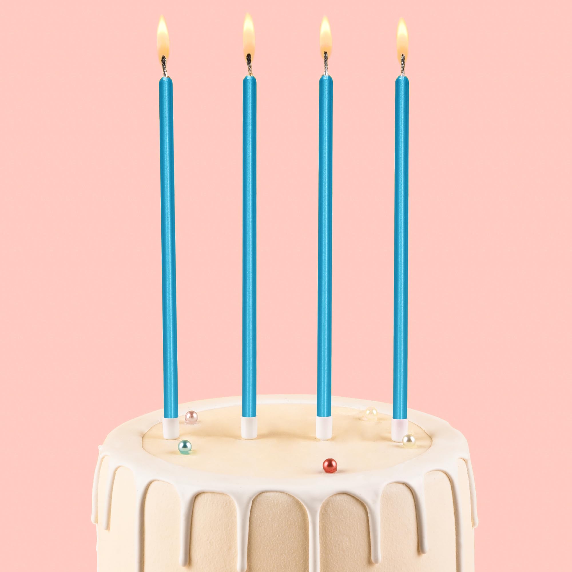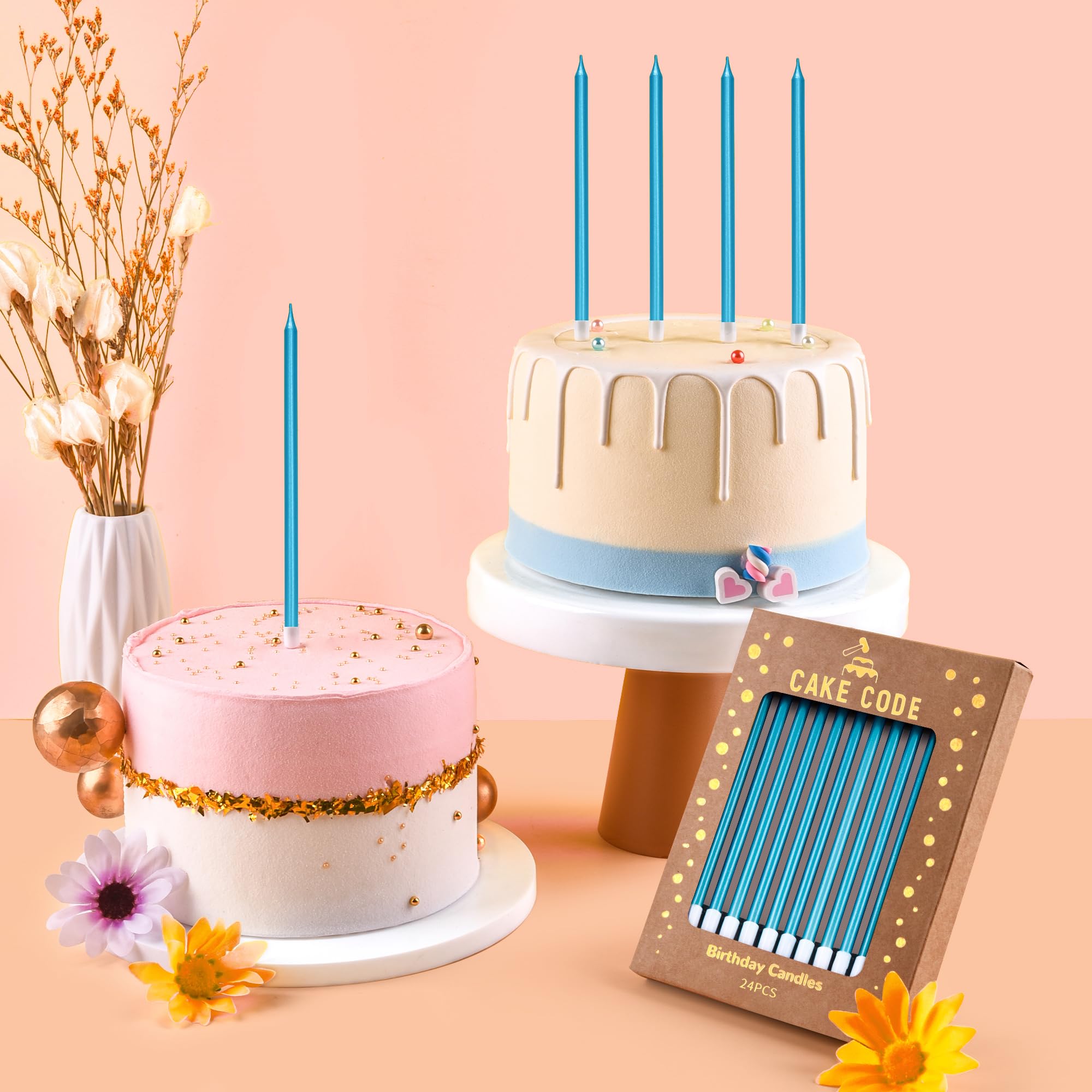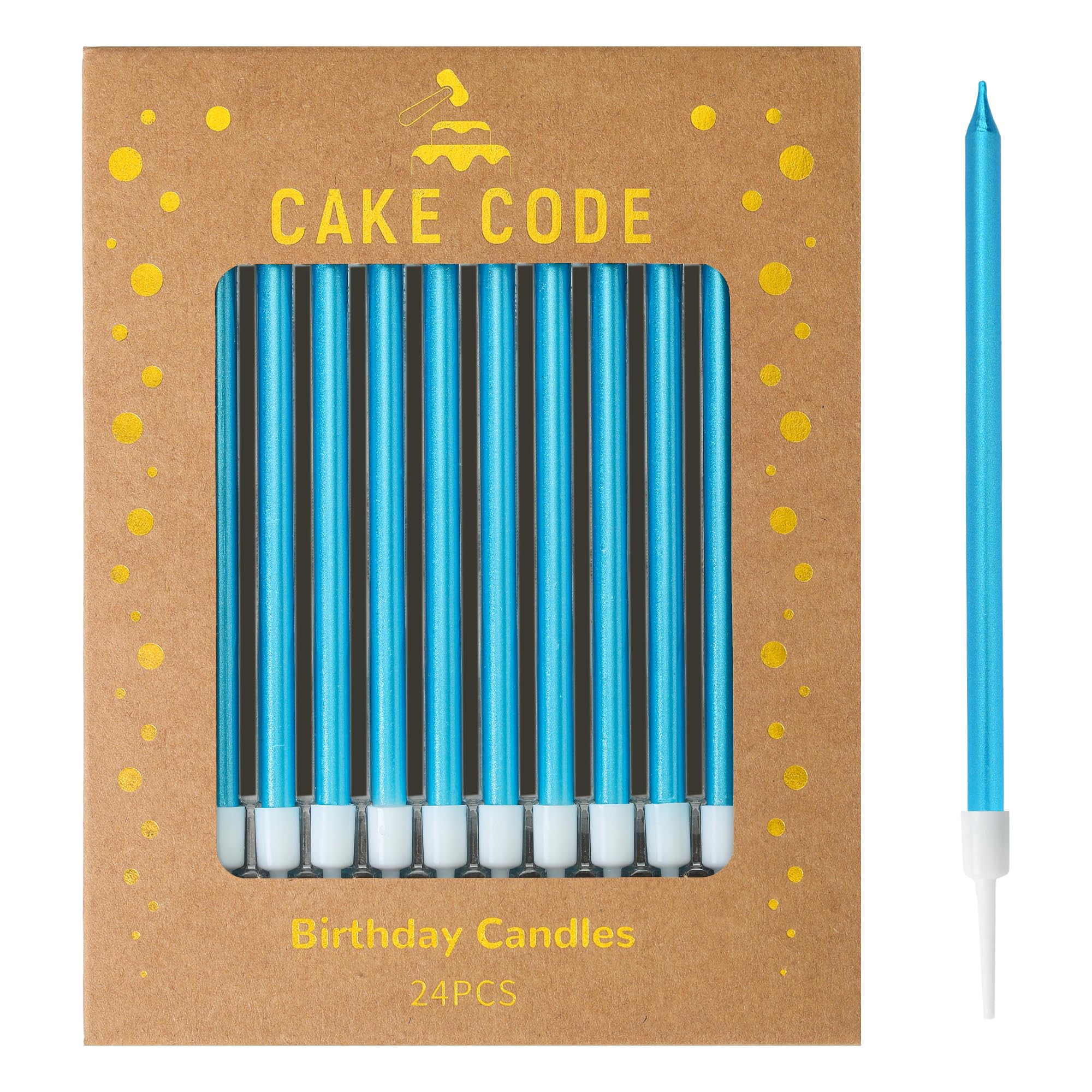 New: CAKE CODE's 24 long, thin & tapered elegant blue cake candles are the perfect finishing touch to celebration cakes and cupcakes. Designed to make your celebration a truly lovely event.