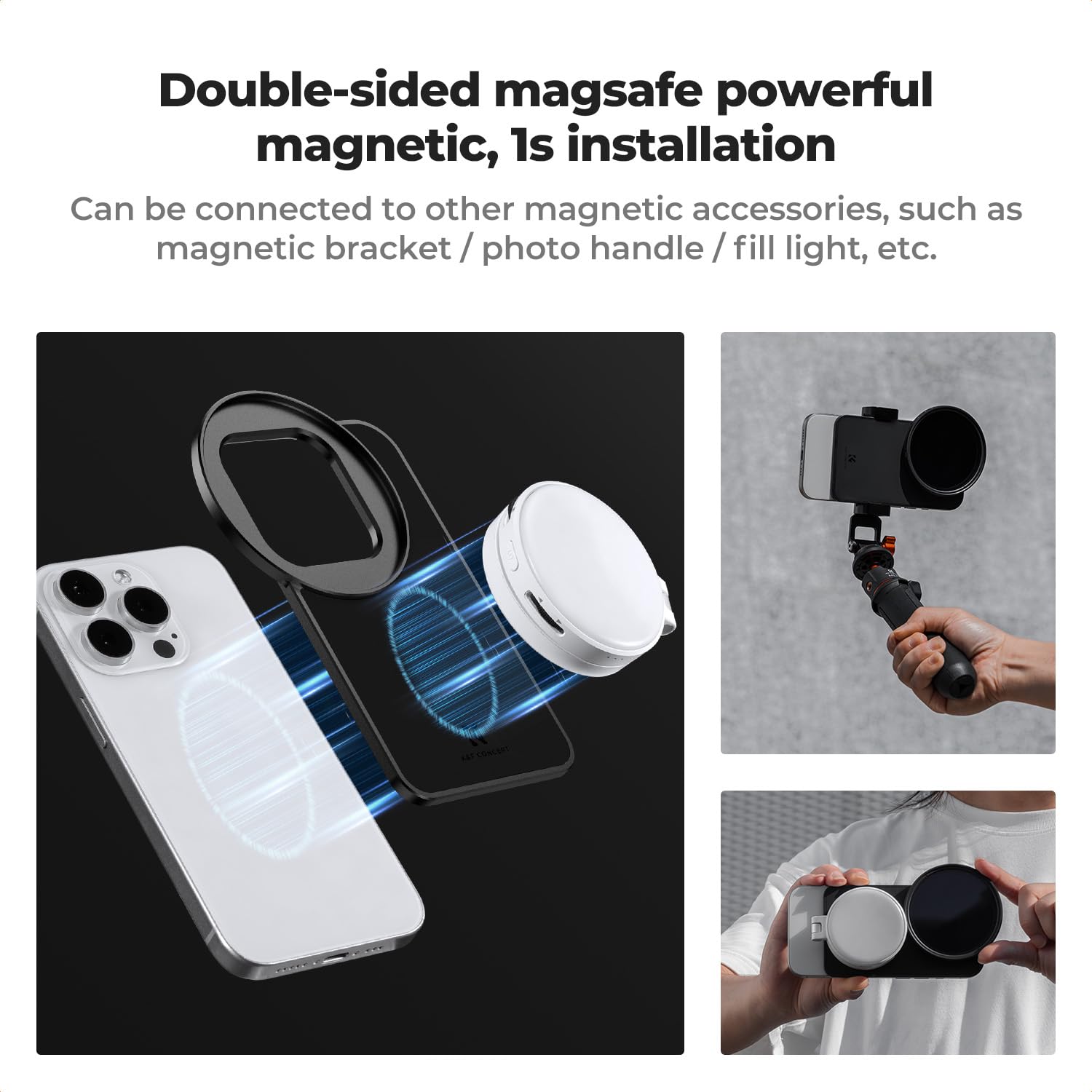 Magnetic Design: Quick and secure attachment system allows for easy mounting and removal of the filter while maintaining a strong hold during use, and it can attach accessories to both sides! Easily add magnetic mounts, ring lights, or other gear.