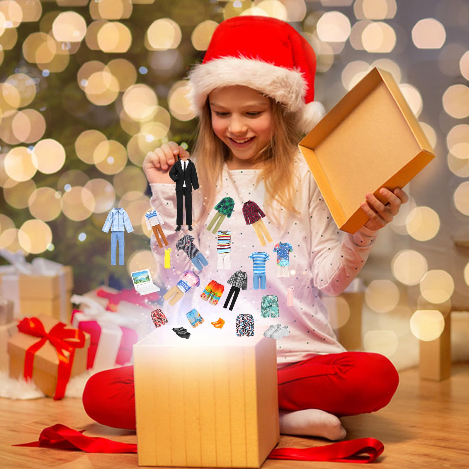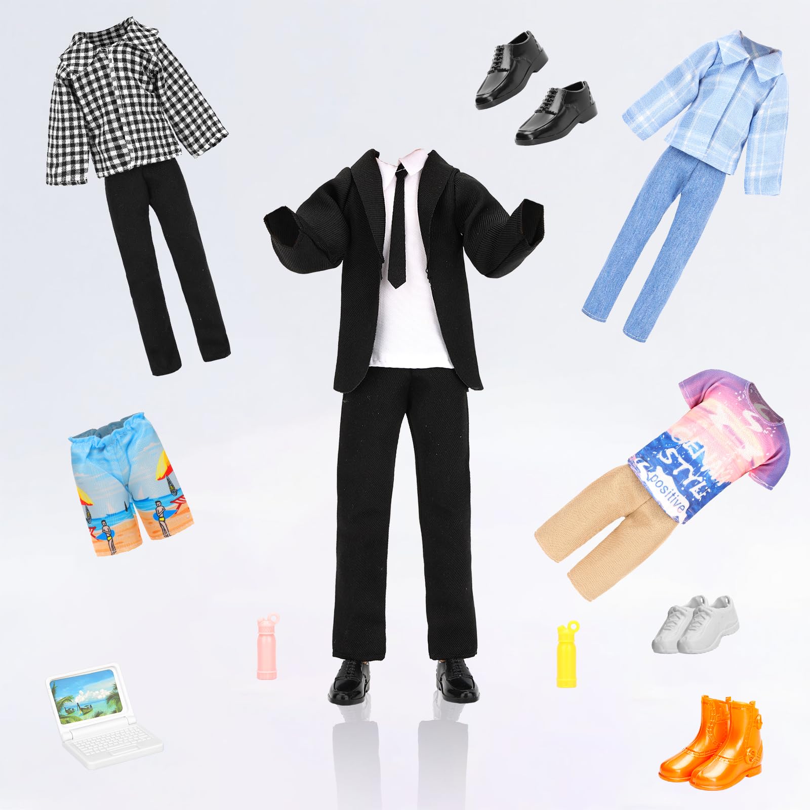 Elevate your 11.5-inch collectible doll’s wardrobe with this premium 16-piece bundle, featuring: ✨ 1 Classic Black Suit Set (Includes: White Dress Shirt + Black Suit Pants + Black Blazer) ✨ 2 Long-Sleeve Casual Tops ✨ 1 Short-Sleeve Top (Random 1 of 5 styles) ✨ 1 Swim Trunks (Random 1 of 5 designs) ✨ 3 Pairs of Fashionable Shoes (Random 3 of 6 styles) ✨ 2 Sporty Water Bottles ✨ 1 Modern White Laptop Perfect for: ✔ Dressy occasions & professional looks ✔ Everyday mix-and-match styling ✔ Collectors & creative play Why Choose This Set? ✓ Tailored Fit – Designed specifically for 11.5-inch dolls ✓ Luxurious Details – Realistic stitching & fabrics ✓ Endless Combinations – From boardroom to beach Note: Clothing items are randomly selected for variety—each order is uniquely styled!