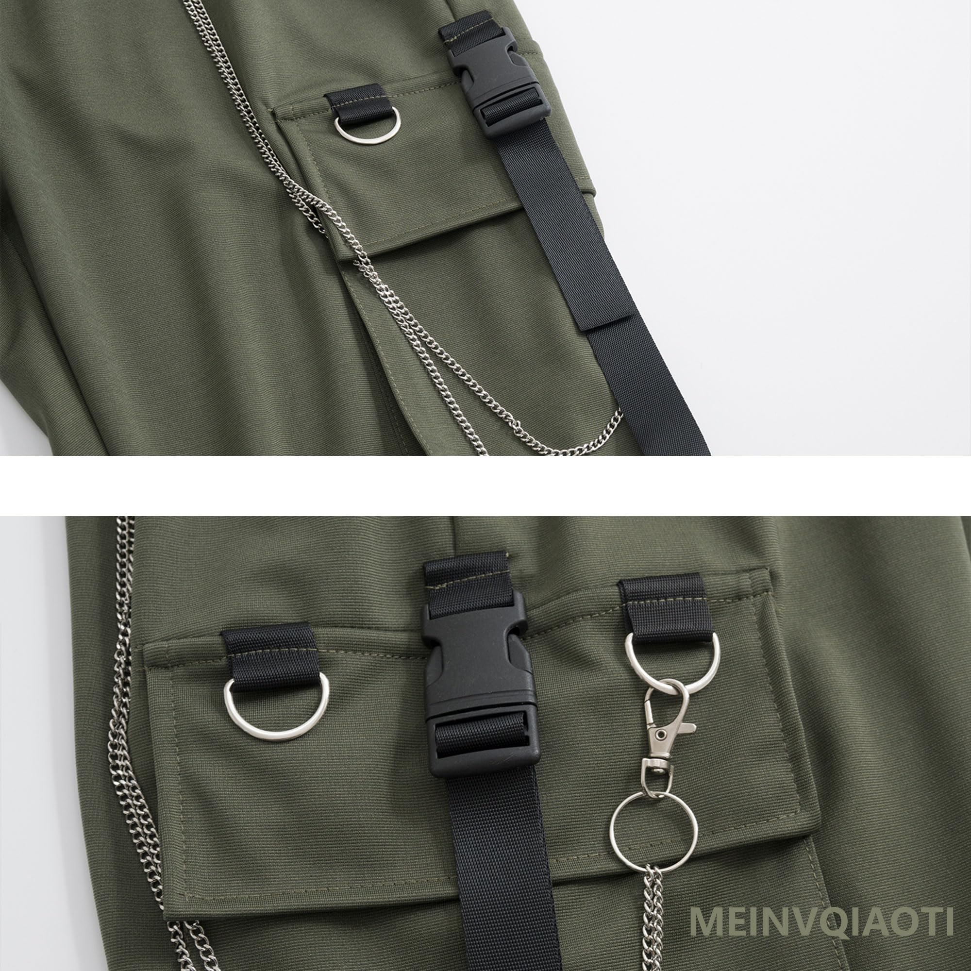 *[High-waist overalls design features]: combat pants women with wide legs, this casual design can perfectly show your long legs, stretch your body, and show your sexy figure and charm. The trousers are decorated with cool metal chains, showing punk style. There are multiple pockets on the left and right sides to store multiple items. Put on these high-waist overalls, you will be cooler and more casual.