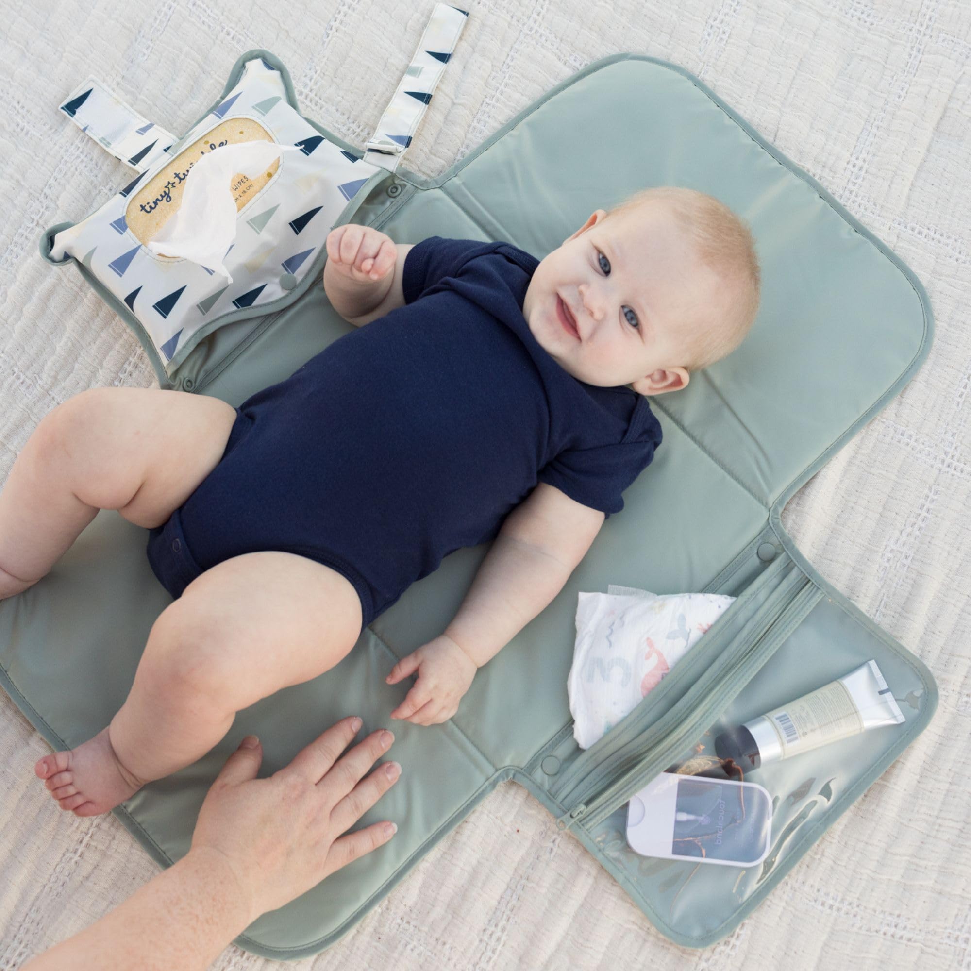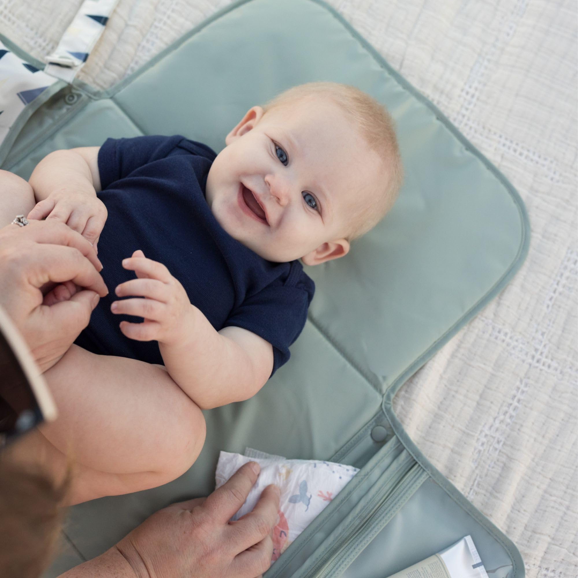TRAVEL CHANGING STATION: Turn any surface into a clean, comfy spot for diaper changes. The baby-changing mat keeps your baby comfortable and dry—perfect for cars, parks, and travel.
