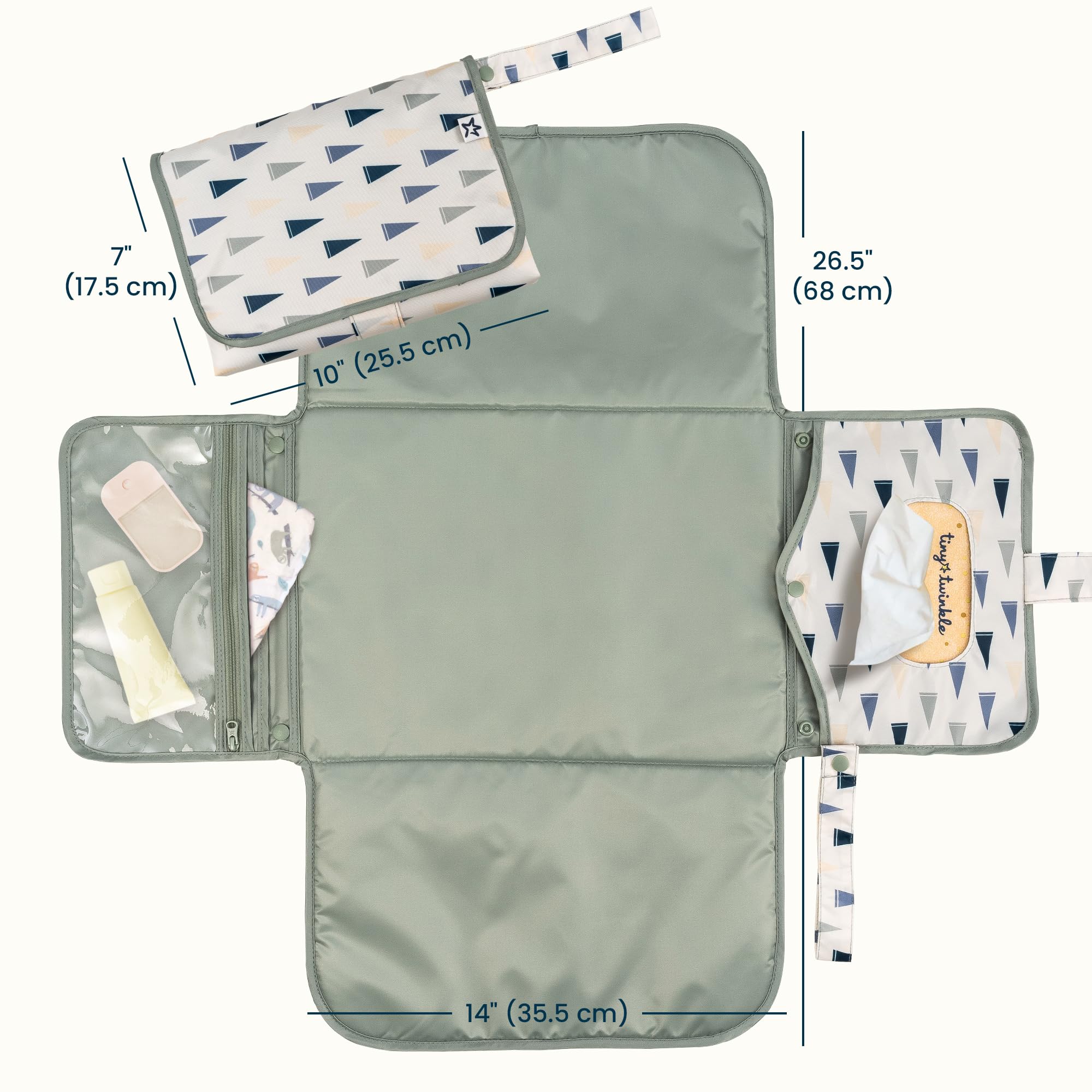EASY TO CARRY: Our Changing Pad wipes clean and folds flat to 7x10 inches for easy storage, and clips to strollers or diaper bags with a secure snap-loop handle—lightweight and ready wherever you go.