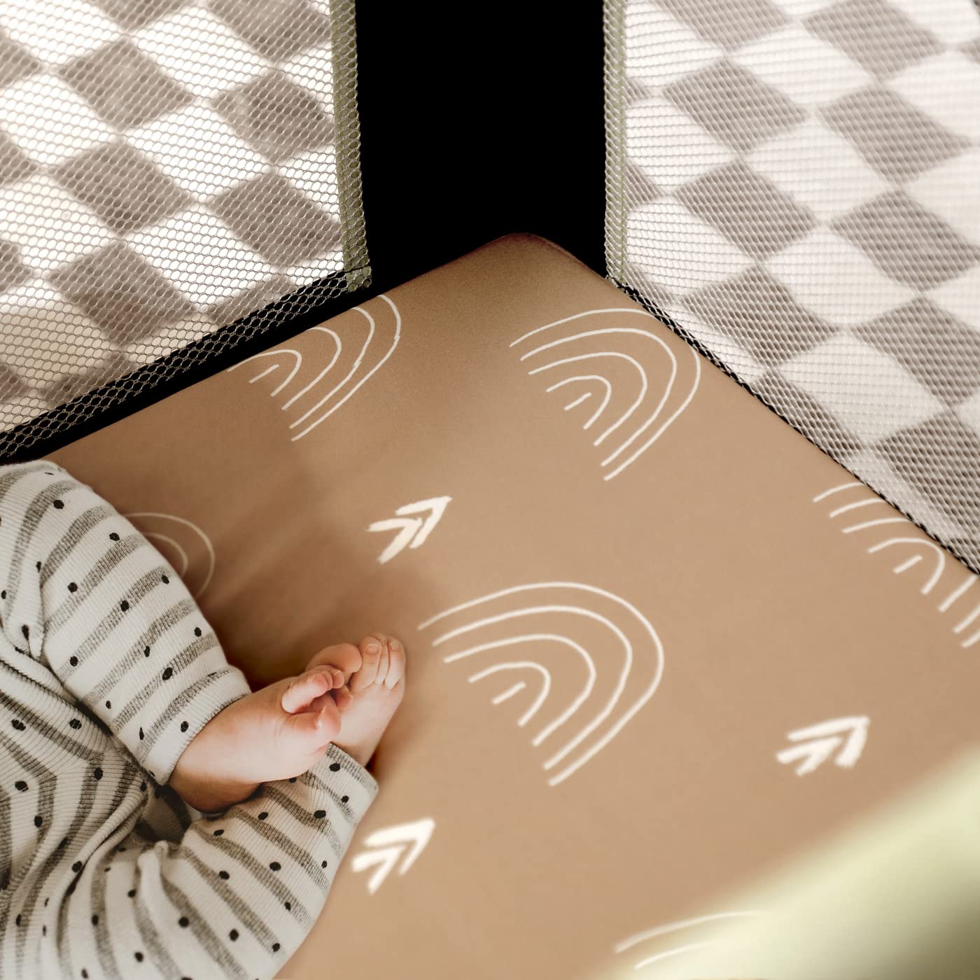 Apple It Within Seconds: Thanks to the elastic bottom, our pack n play sheets come in a classic, the cute wild forest jungle bear/rainbow pattern that will put the finishing touches to any bedding. Make sure to give your darling a serene and calm bed to rest in.
