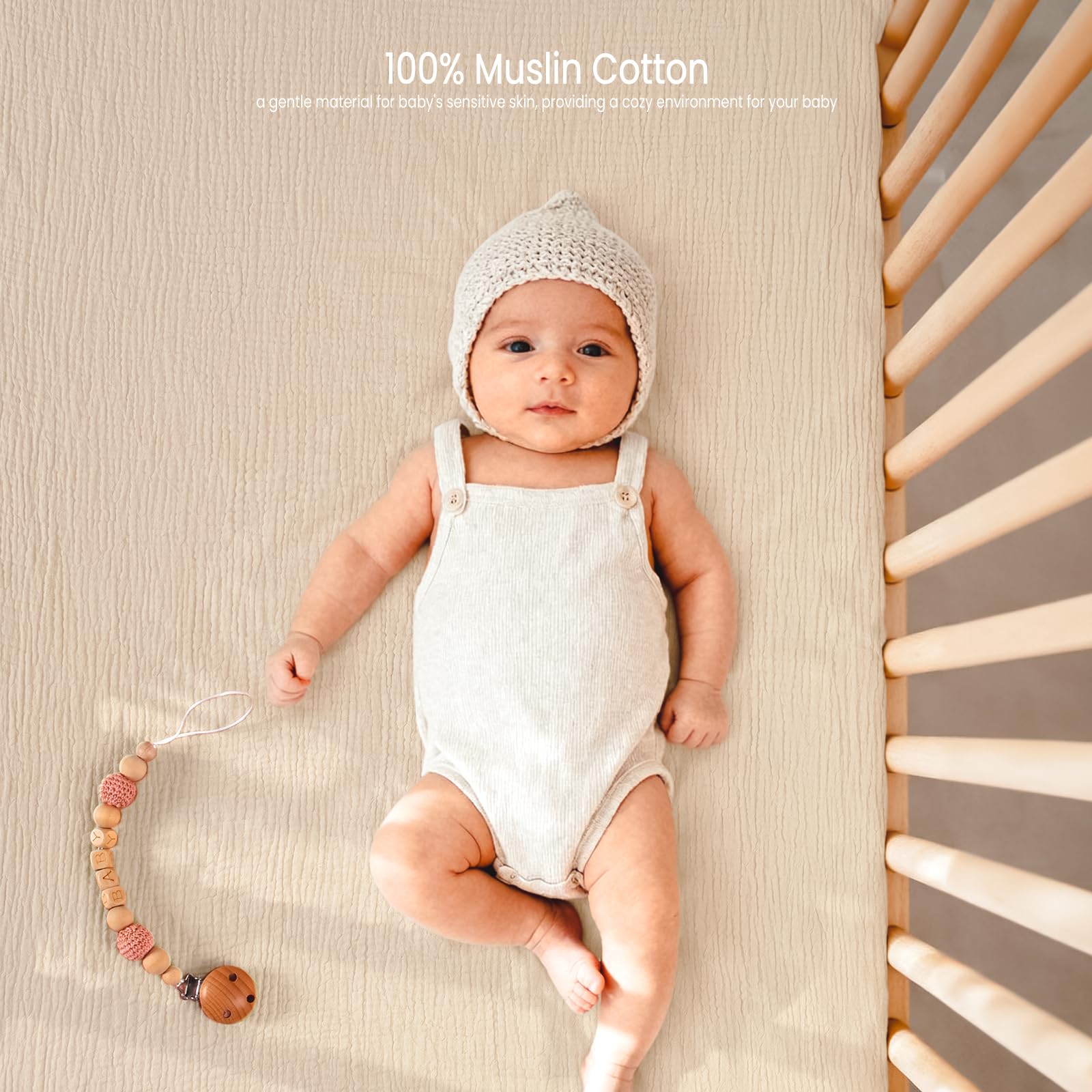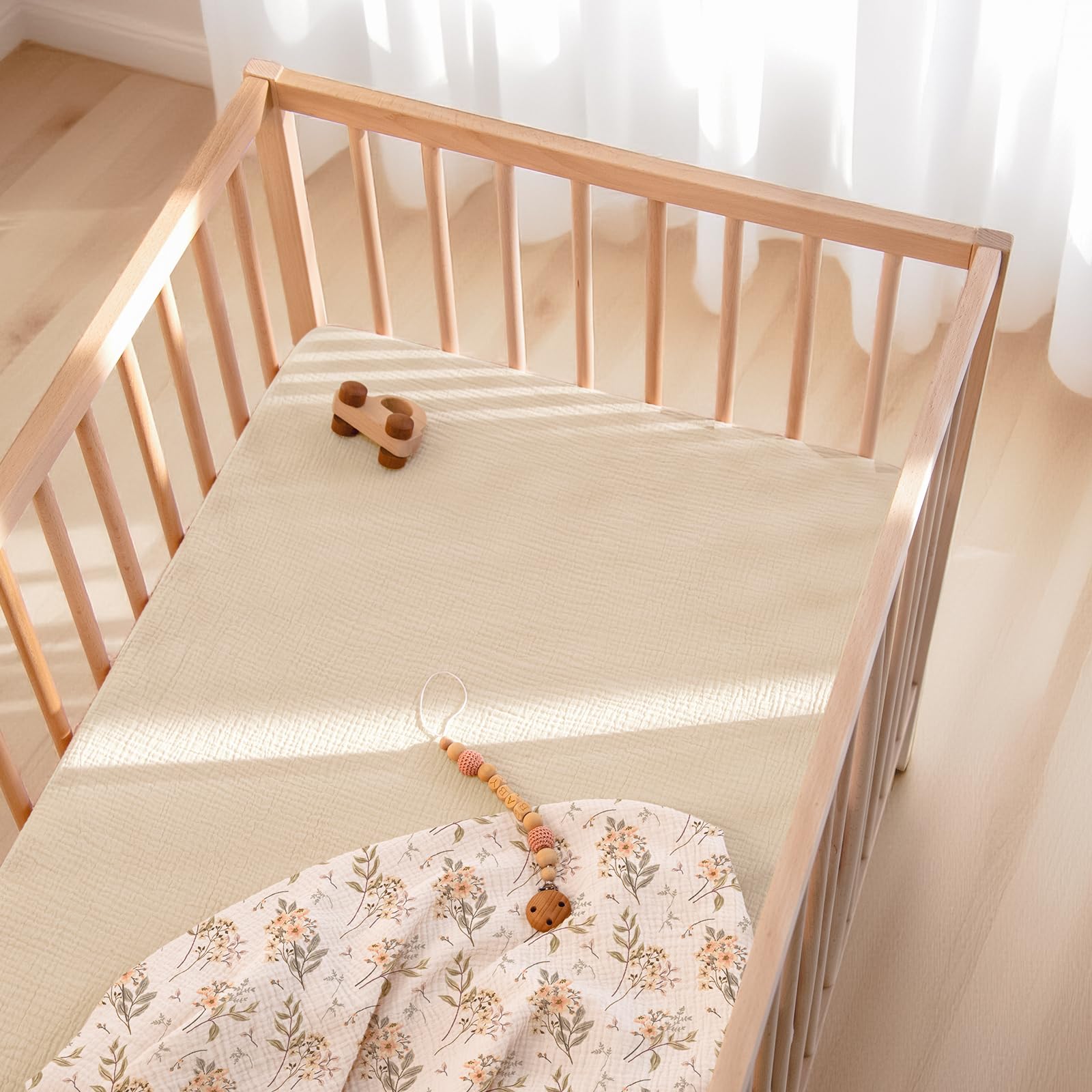 Soft & Breathable Muslin Cotton: Wrap your little one in breathable, cloud-soft comfort and let them drift into dreamland. Our muslin cotton crib sheets are lightweight and ultra-soft, feeling gentle against your baby’s sensitive skin. The breathable weave promotes airflow to help your baby stay comfortably cool all night long.