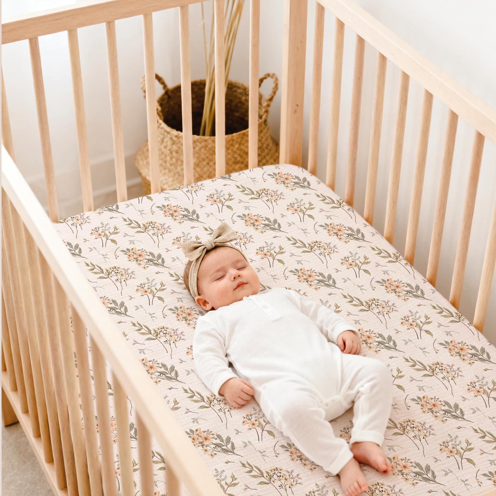 A Warm & Sweet Nursery for Her: Adorned with a charming floral pattern, these crib sheets add a tender, feminine touch to your baby’s nursery. The soft, gentle colors create a warm and sweet ambiance, perfect for baby girls, whether you’re decorating her first room or selecting a heartfelt gift for a new arrival.