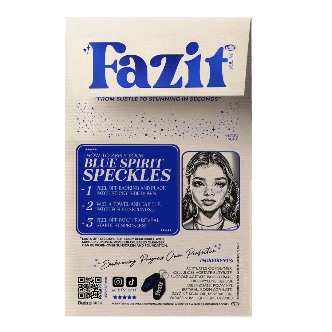 EASY APPLICATION - Applying our water resistant blue speckle patches is a breeze! First, peel off the backing and place the sticky patch on your skin. Then, wet a towel and dab the patch for 60 seconds. Finally, peel off the patch to reveal your glamorous new speckles. It's that simple – no mess, no fuss, just beautiful, natural-looking speckles in minutes. Perfect for anyone looking to add a touch of charm to their look with minimal effort!