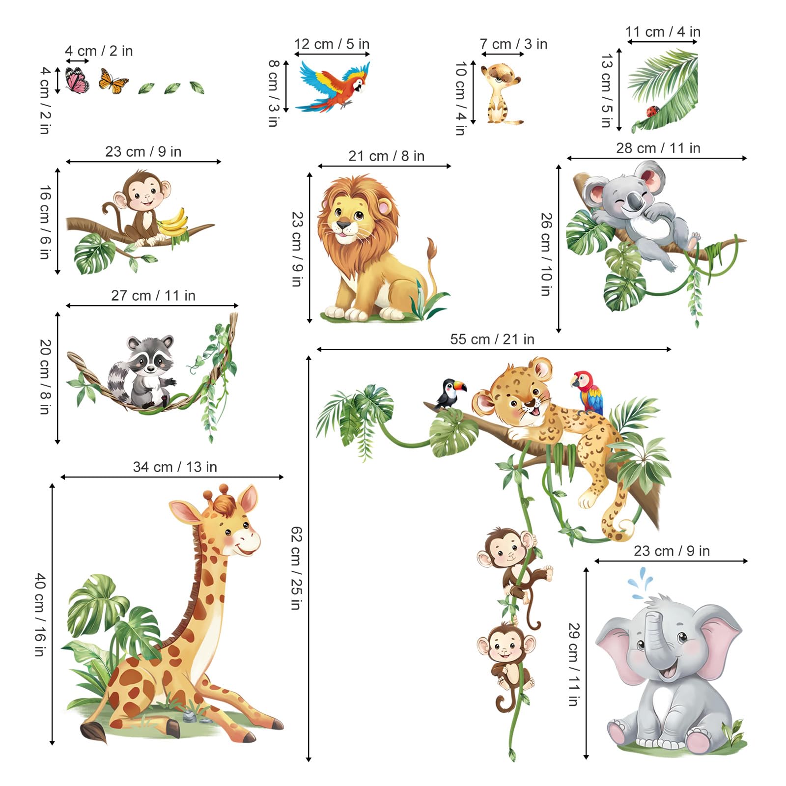 decalmile safari animals tree branch wall decals are perfect to decorate kids room, bedroom, living room, baby nursery and playroom.