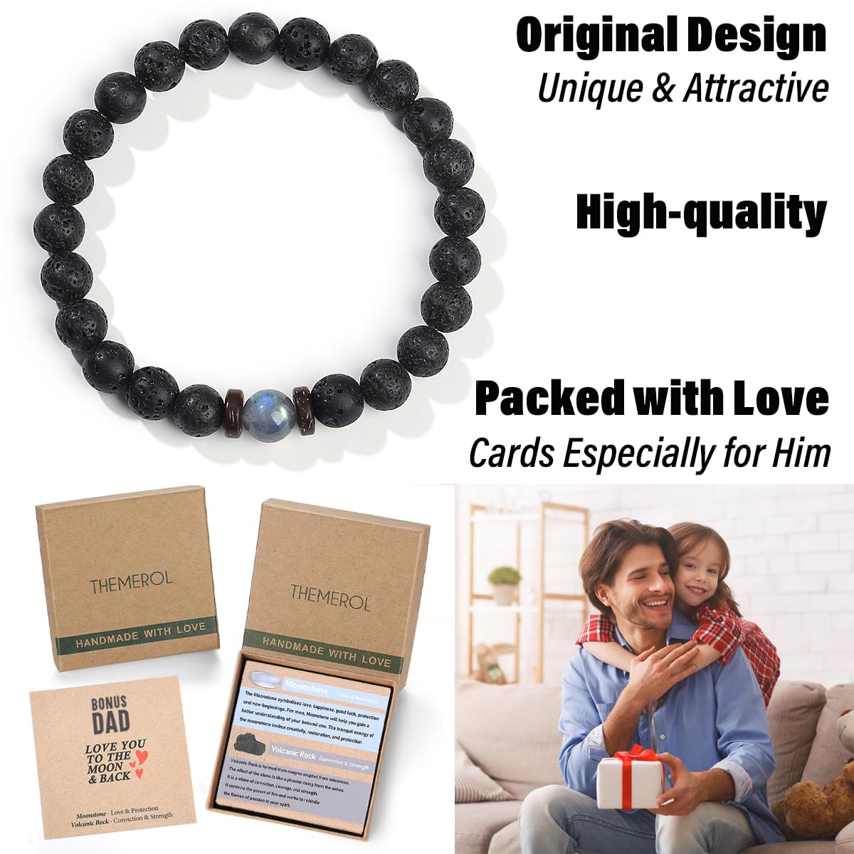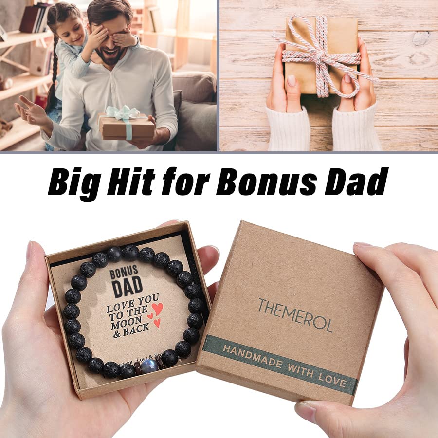 【Unique Gifts for Bonus Dad】This handmade bracelet combined with Strength Volcanic Rock and Love Moonstone. It brings your bonus dad powerful strength, courage, conviction, good luck, love, and protection. It works amazing as bonus dad gifts, gifts for step dad, Fathers Day gifts from daughter son, unique birthday gifts for bonus dad.