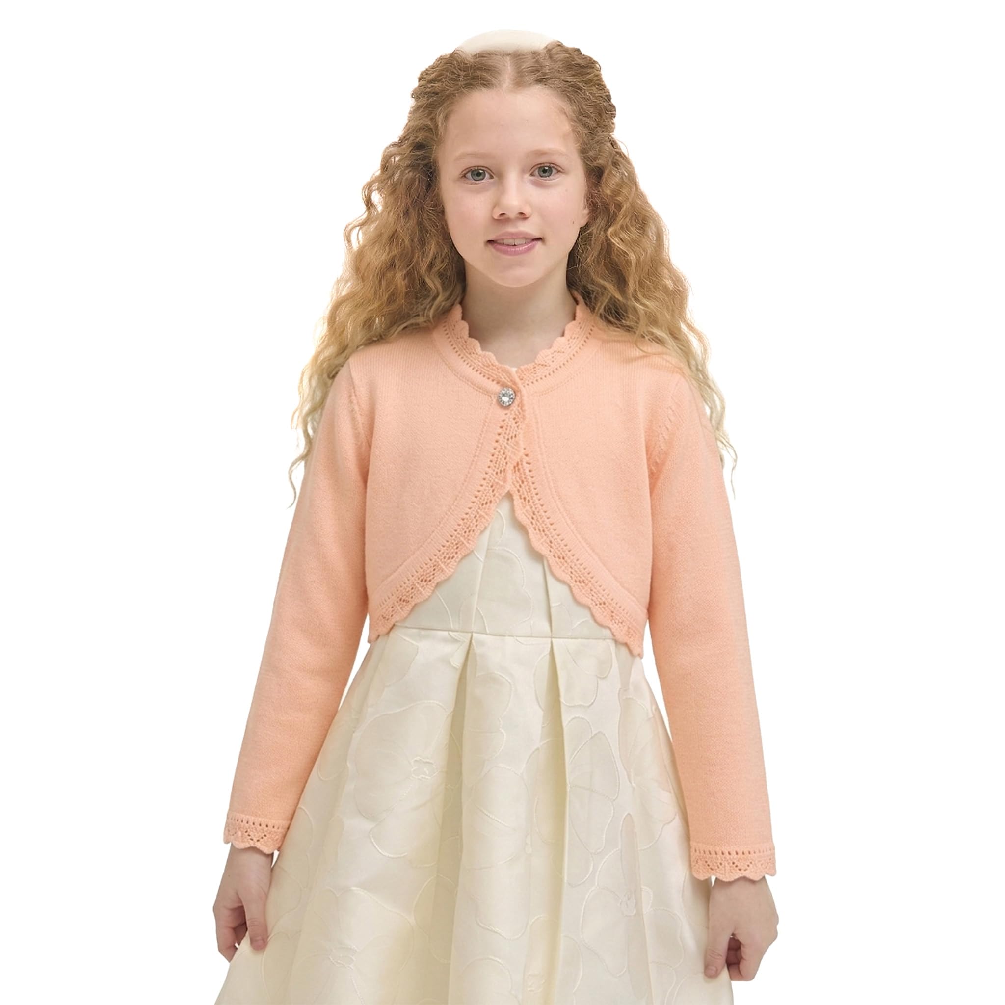 Long sleeve eyelet hem design bolero is perfect for over any dress