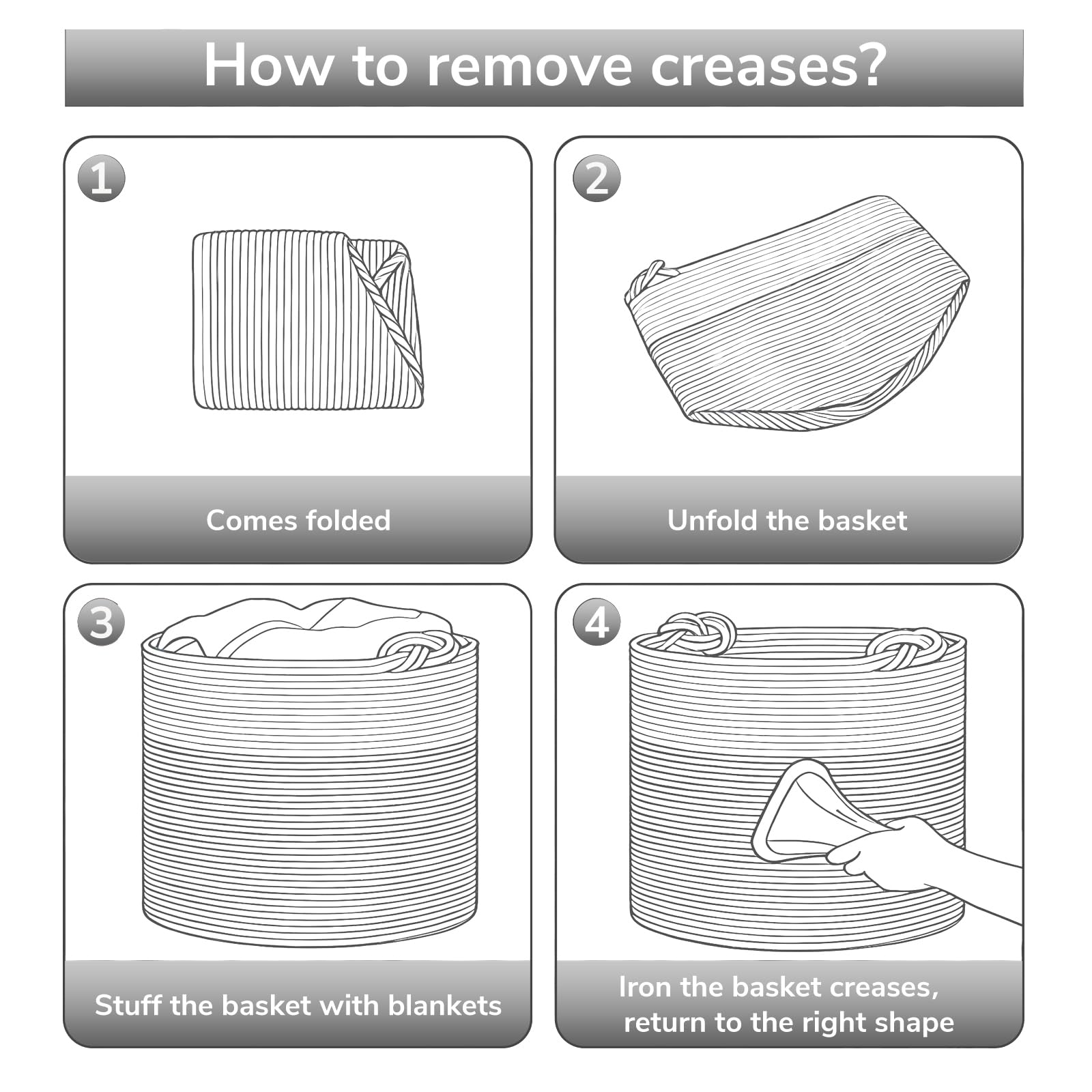 Easy to Restore. The large basket arrives folded, but with just a few towels or blankets, it will quickly regain its elegant shape. And, if needed, ironing is easy too.