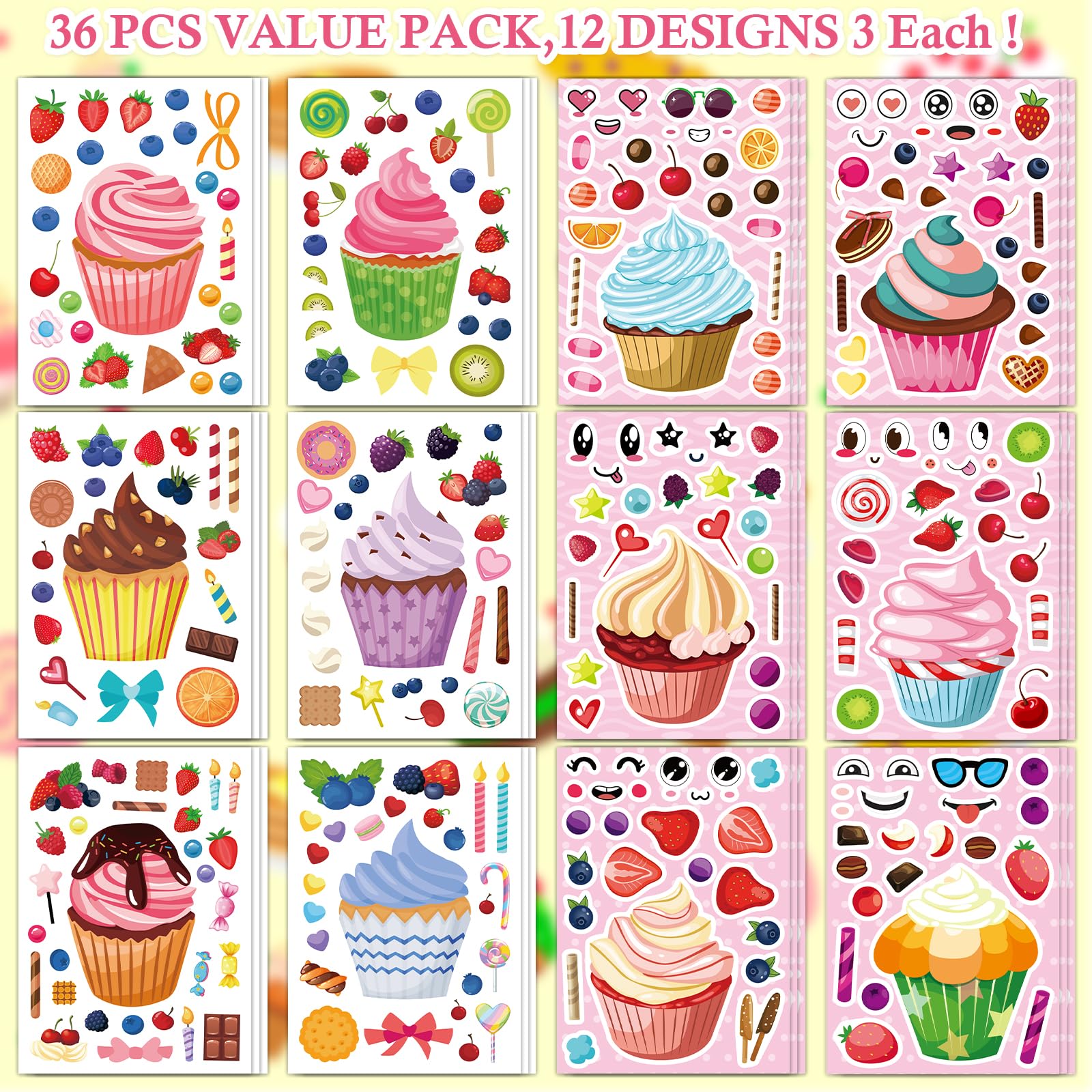 🧁36 Sheets Stickers Pack: You'll receive 12 unique design styles, with 3 sheets of each design. (Each sheet measures 8.27"x5.9".)
