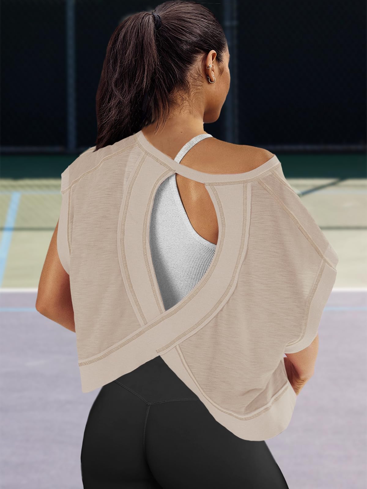Occasion: Embrace comfort and style effortlessly. This short sleeve open back tops is perfect for going to or from a workout, this tee features a soft fabrication, slouchy crop and flattering back opening. Its adaptability blends seamlessly with your lifestyle.