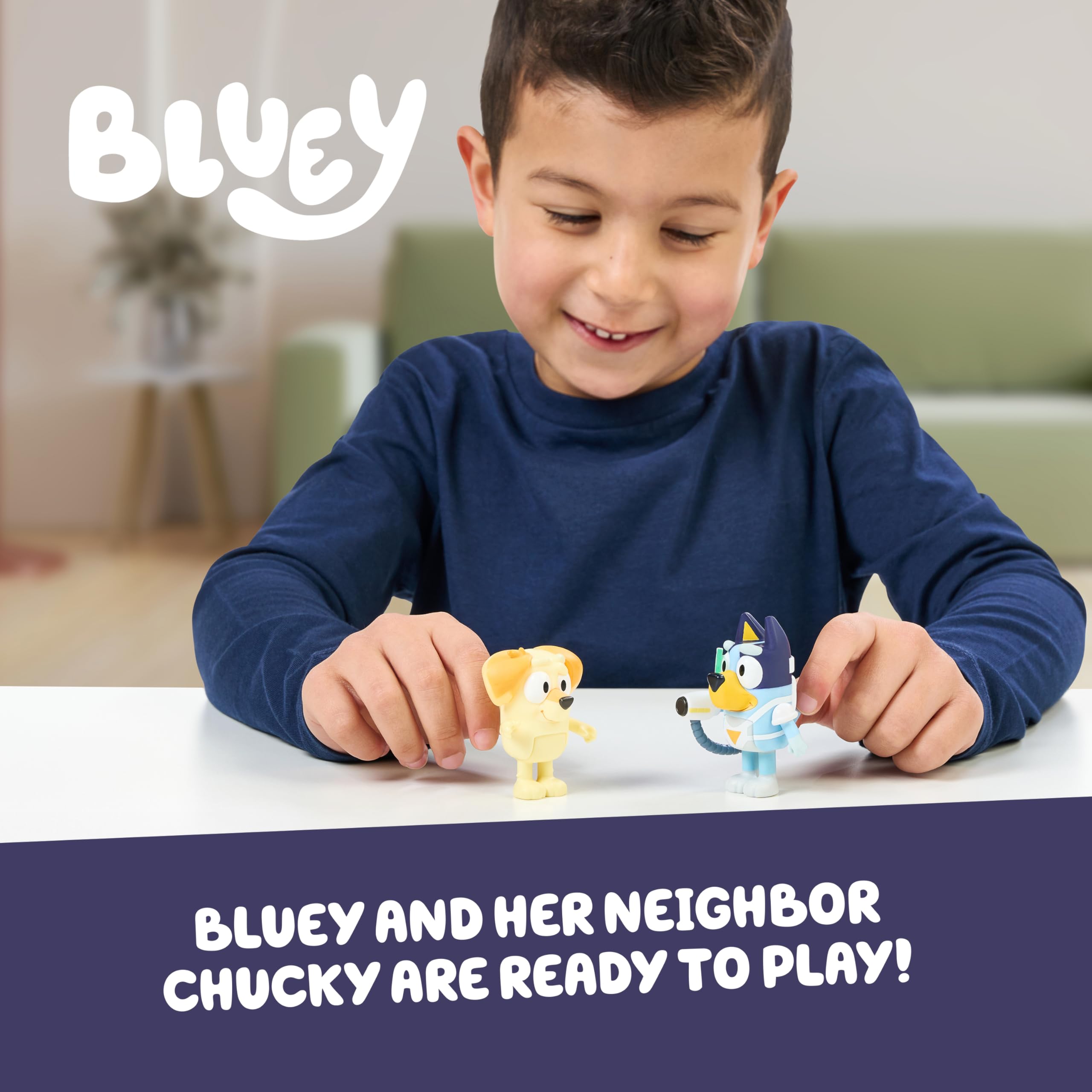 Immersive Design: Our Bluey figures set comes with Bluey dressed up in a fun blaster suit and her neighbour Chucky, all set for adventure; these Bluey small toys are perfect for encouraging immersive, action-packed pretend-play