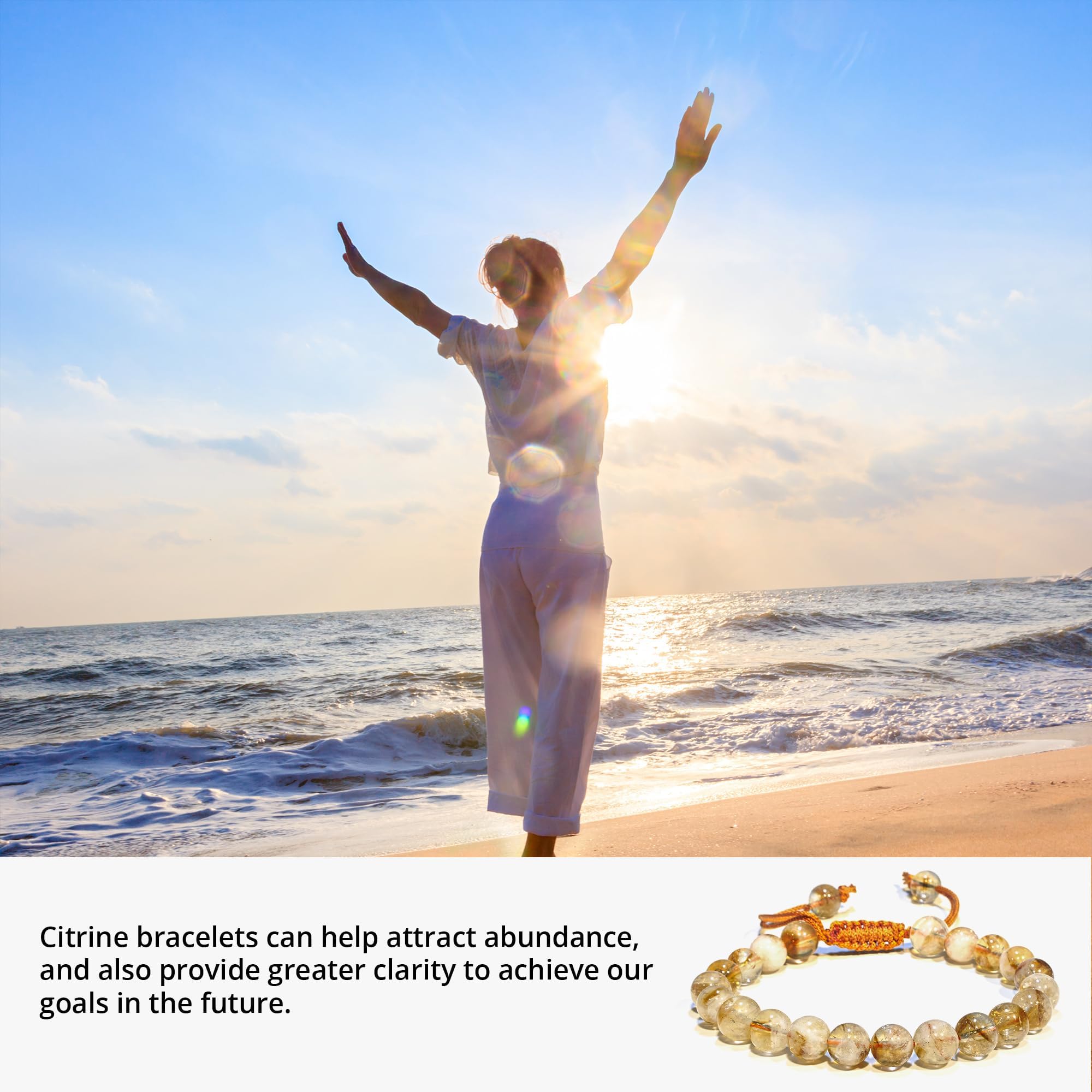 Citrine Crystal: With the Citrine adjustable bracelet, you won’t get just a simple bracelet but a beautiful, fashionable accessory that can also help promote and attract positivity, happiness and good spirit.