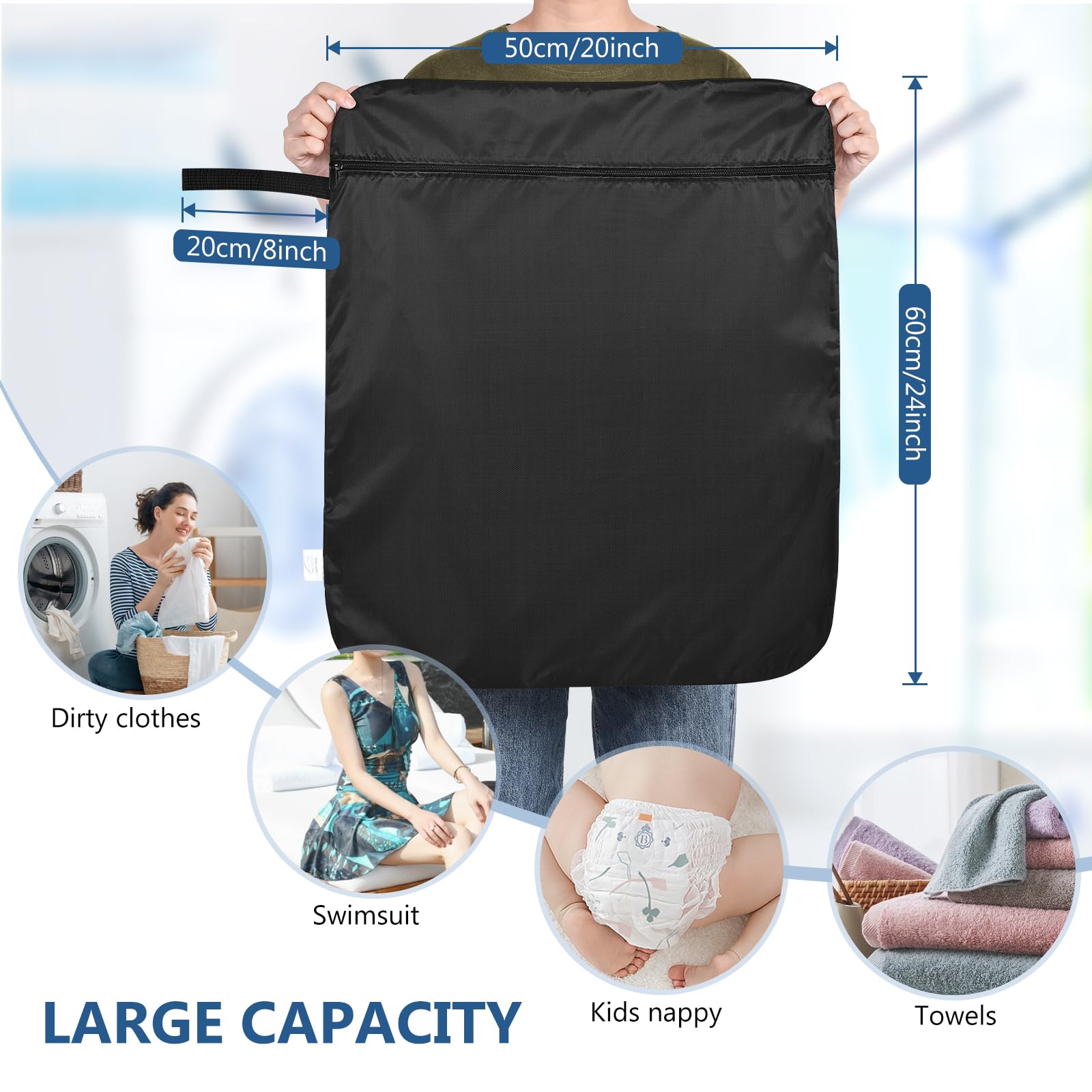 LARGE CAPACITY: Each waterproof wet bags measures 50 x 60 cm / approx. 20 x 24 inch. Large space allows you to hold more dirty clothes. Metal zipper slides smoothly and keep your items in the bag from overflowing during using.
