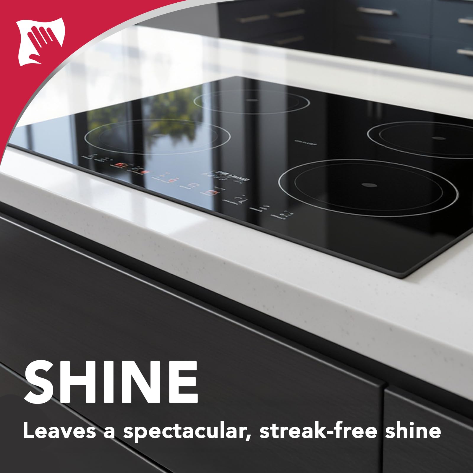 SHINE & PROTECT: Dramatically cleans, shines, and protects glass/ceramic/induction smooth top ranges. Buff with a paper towel to shine.