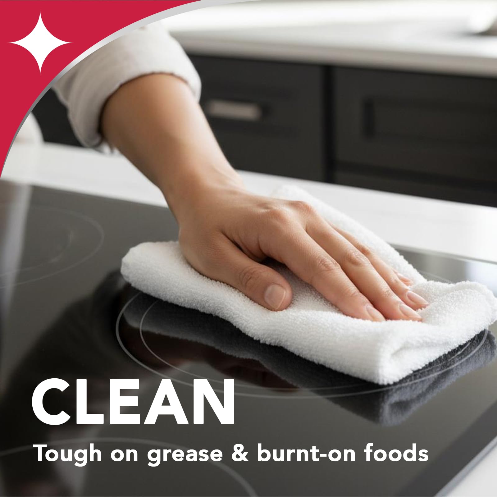 SAFE & EASY TO USE: Leave a streak-free shine while removing splattered food, dirt, oily residue & watermarks. Will not scratch or damage your cooktop.