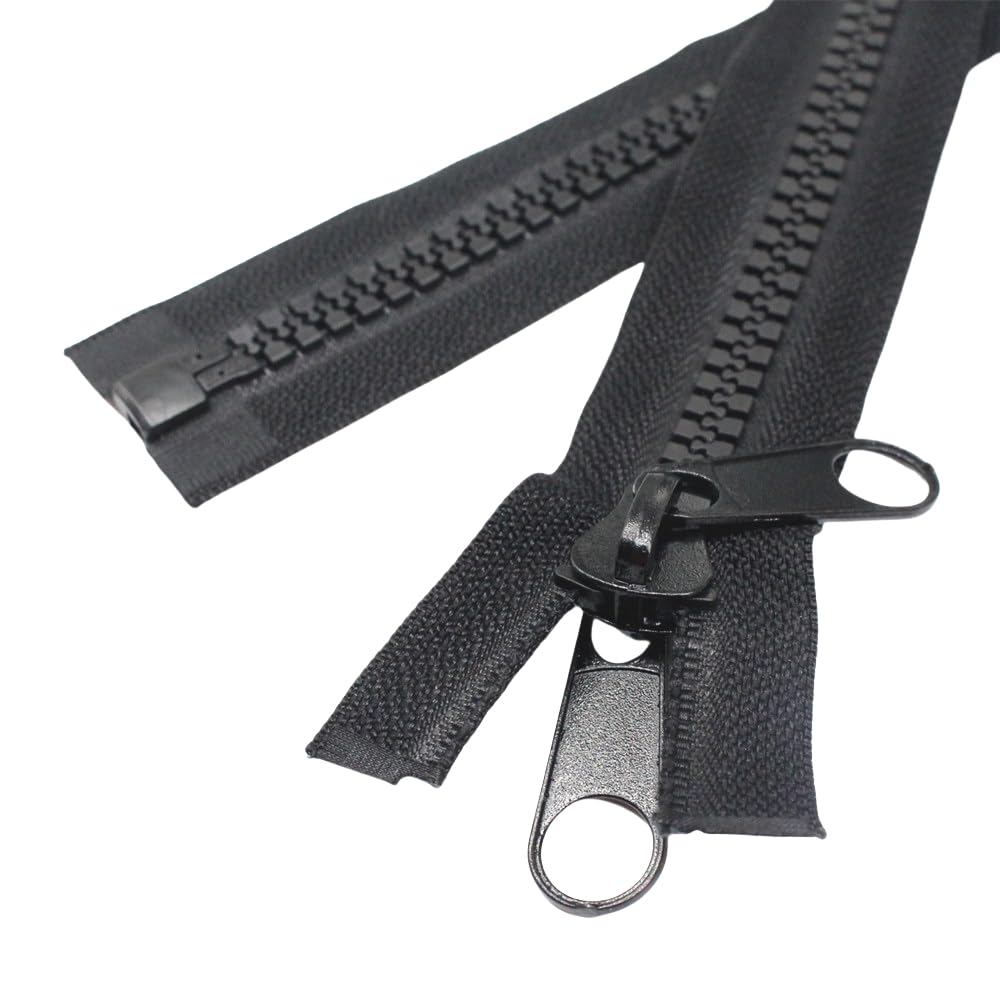 #10 large black plastic zippers with enameled metal double tab slider, it is openable from both sides