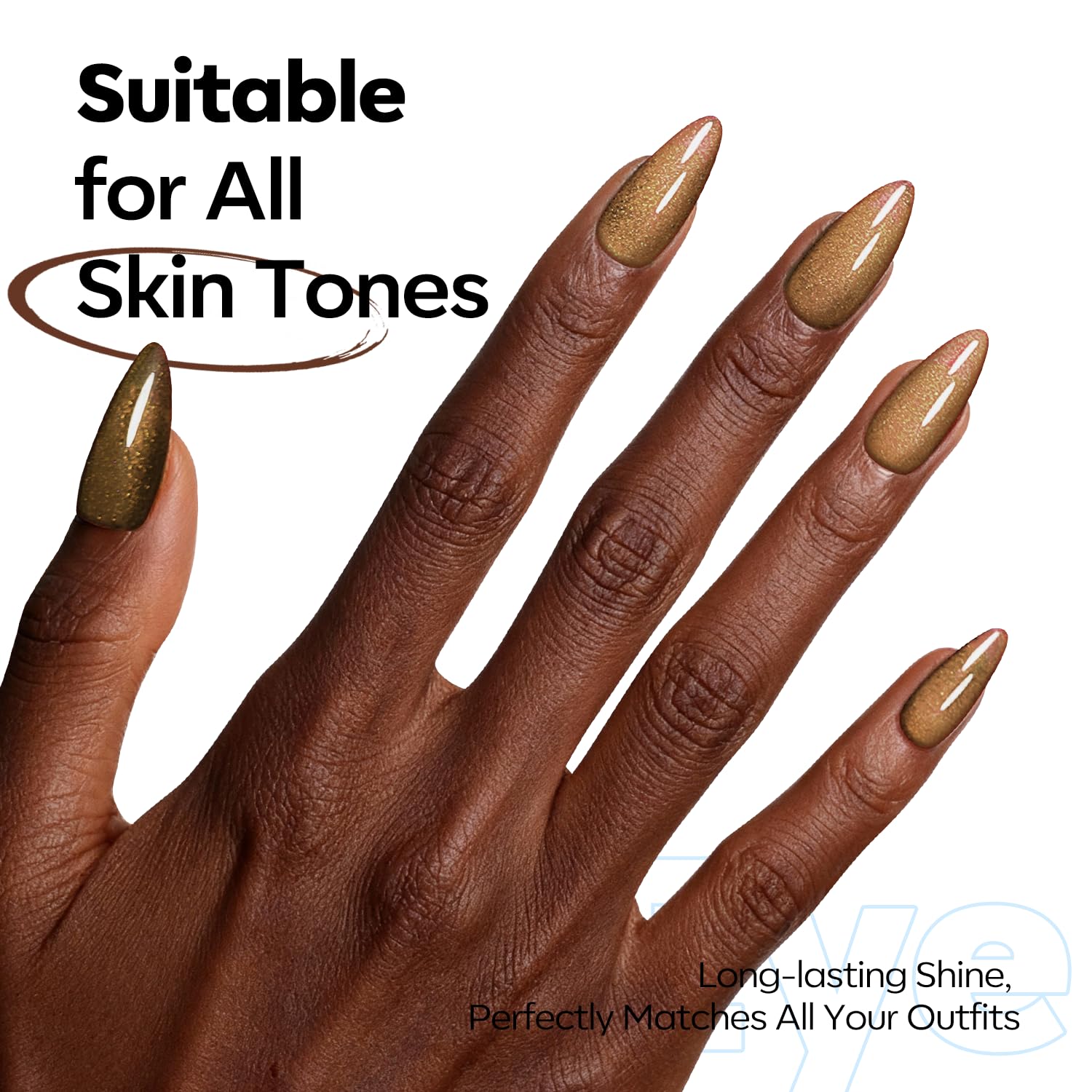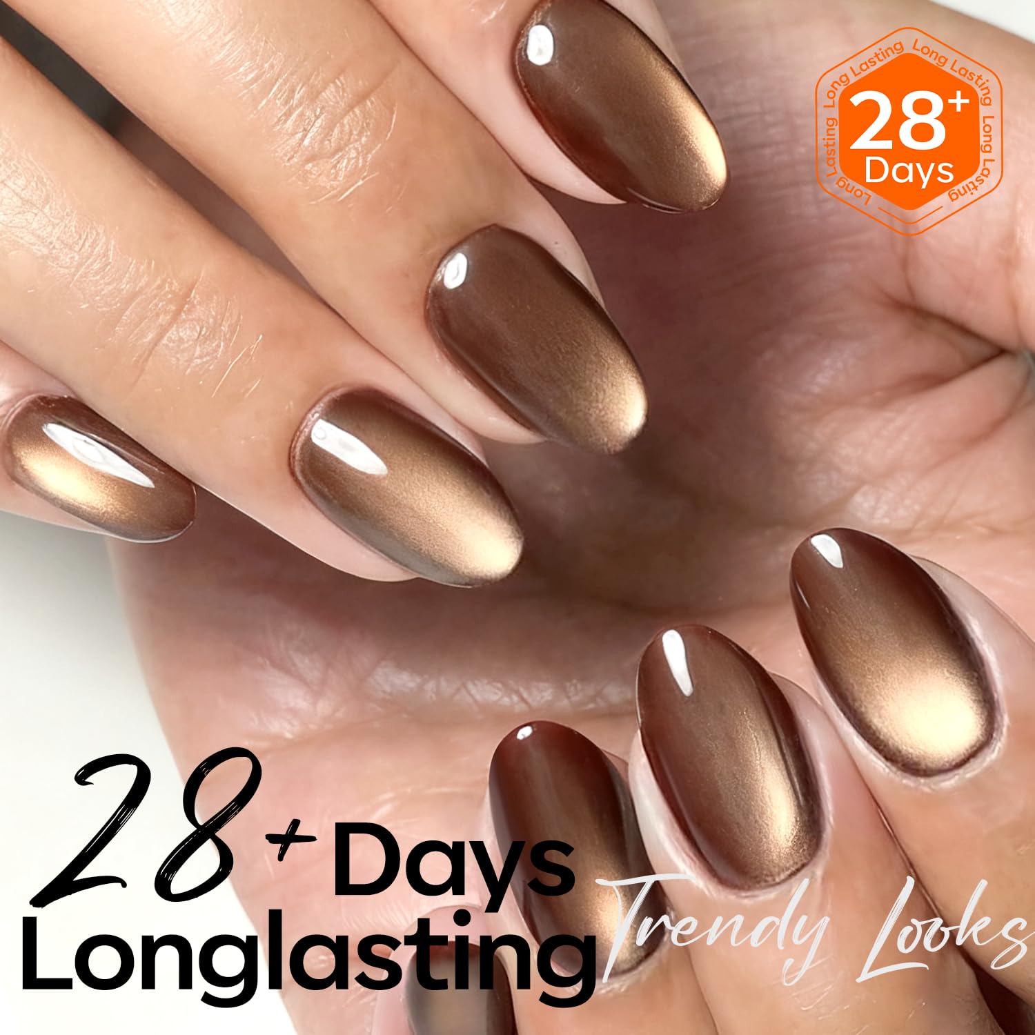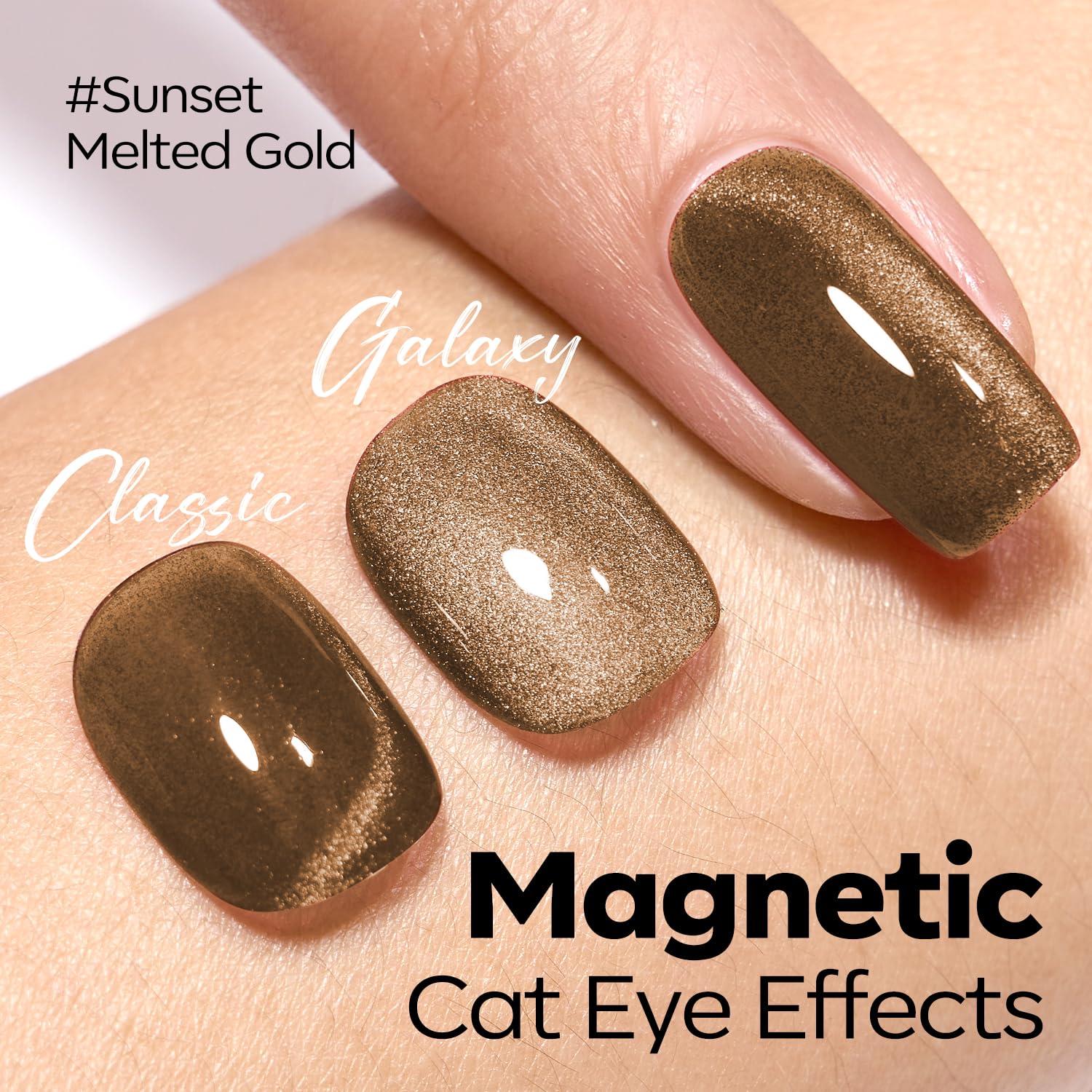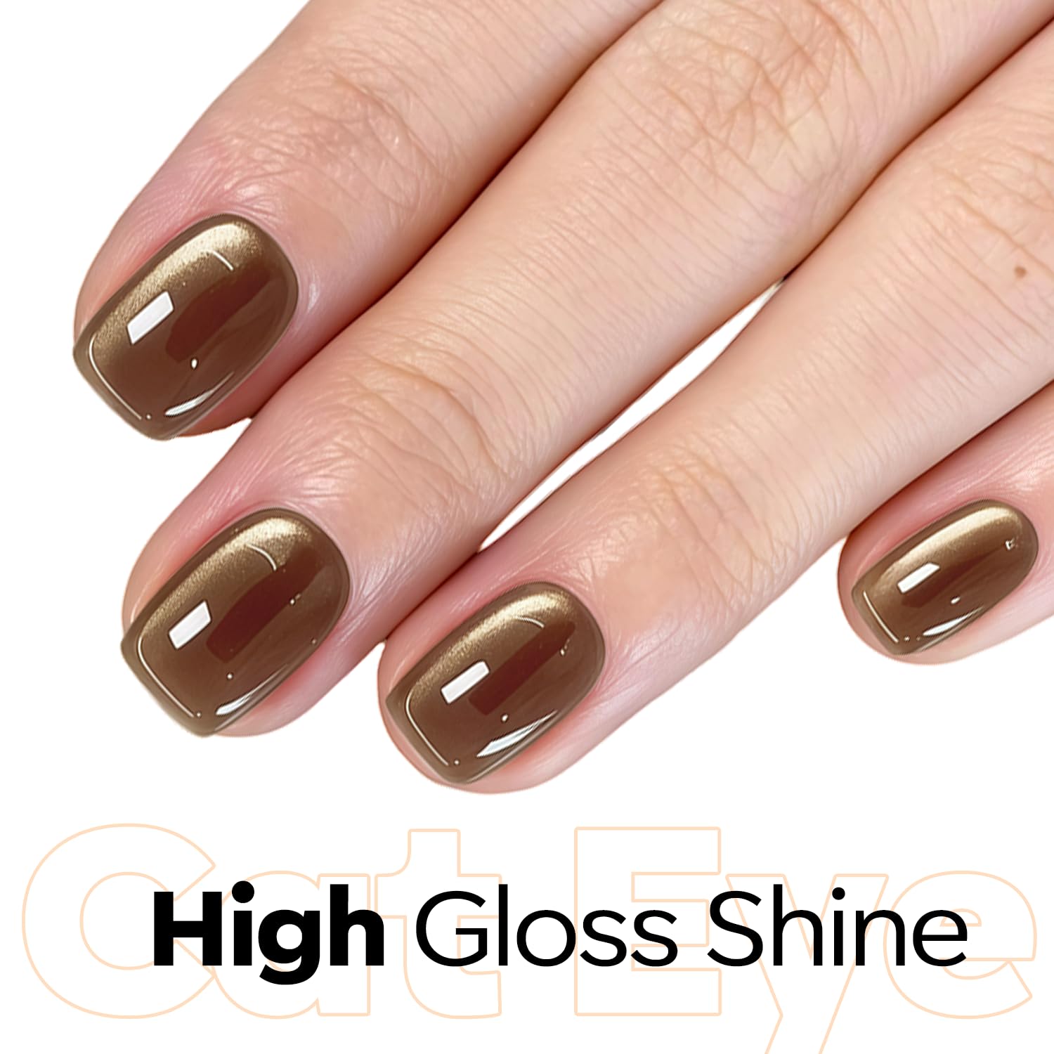 Tips: Hold the magnet 3-5mm above the surface for 5-10 s to achieve your desired effect! Each Modelones glassy brown cat eye gel polish is expertly mixed with metallic magnetic glitter powders for a shiny finish. Different angles create different visual effects