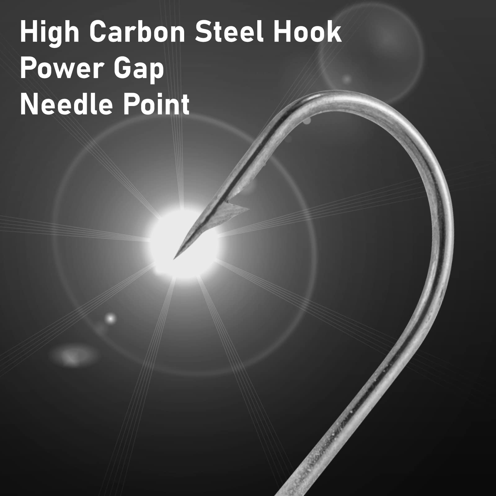 Fishing hook is made of sturdy carbon steel. The pointed hook is sharp, with higher durability and strength. The sharp hook ensures better penetration and you can effectively hit the target with the bait.