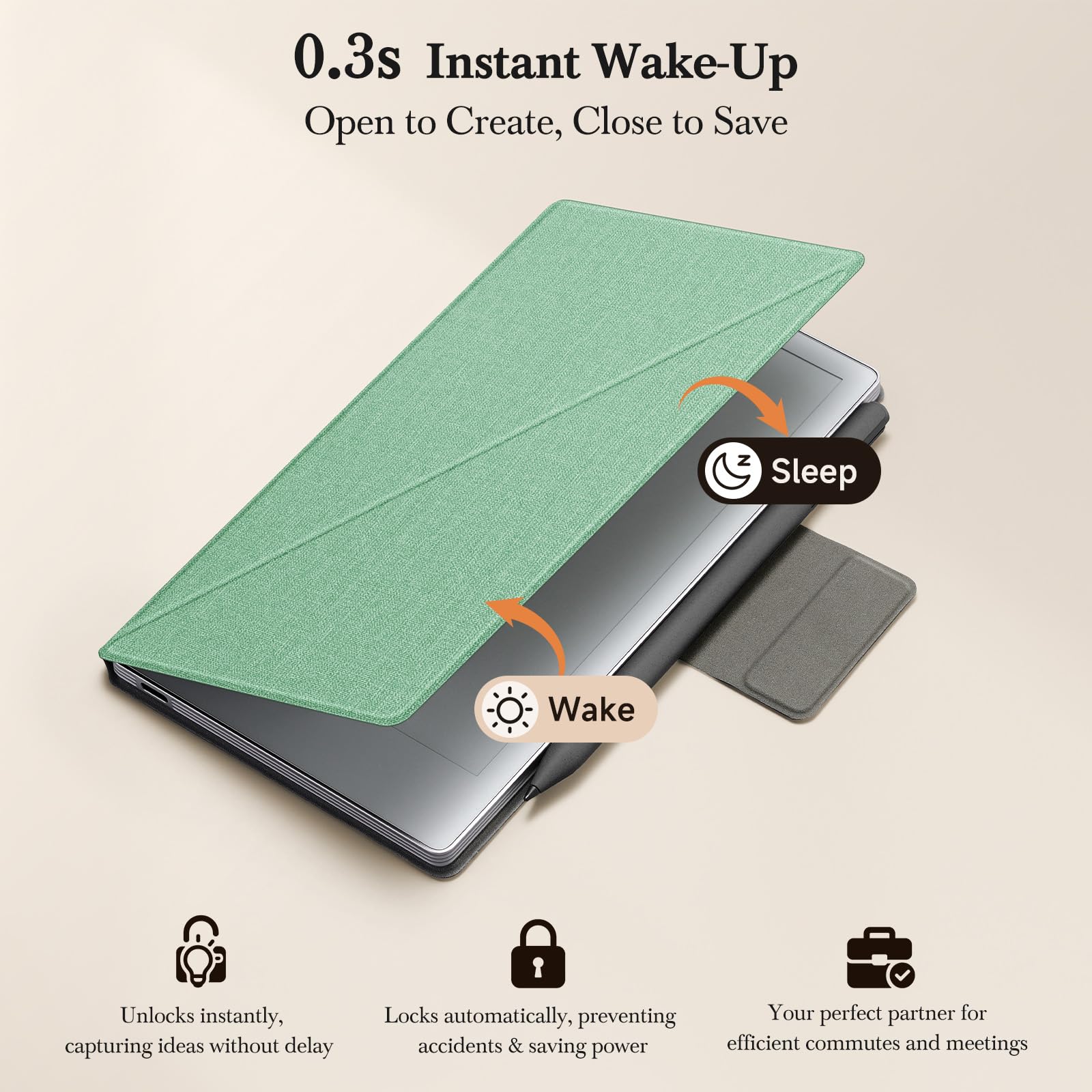 【Instant On/Off, Zero Waiting】: Experience seamless workflow activation. The smart cover enables instant wake-up upon opening (responsive in <0.3 seconds), capturing sudden inspirations without boot-up delays. It auto-locks upon closing, preventing pocket mishaps and saving battery, making it ideal for hectic commutes and efficient daily use.